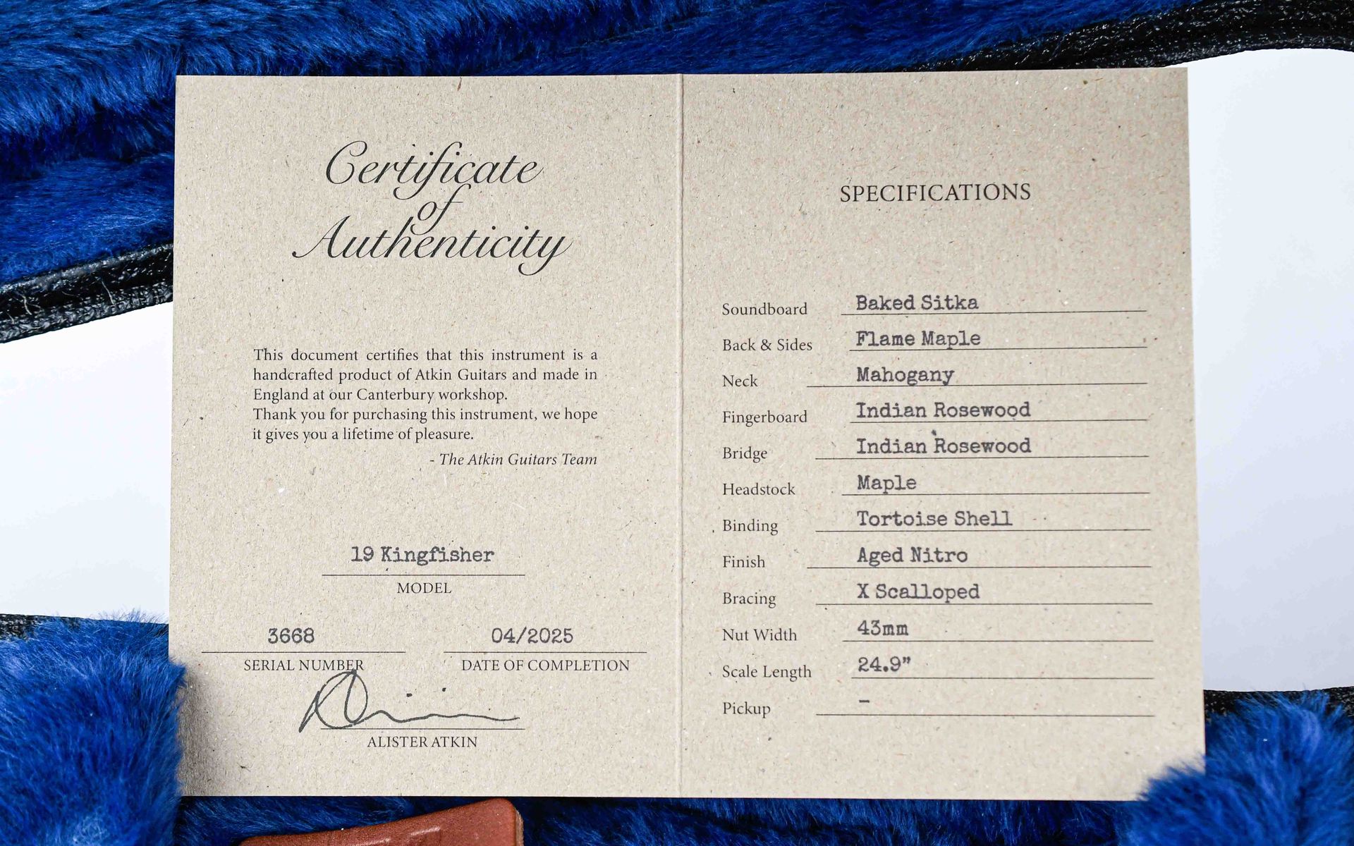 Atkin / J19 STD Kingfisher TFOA LTD / Guitar