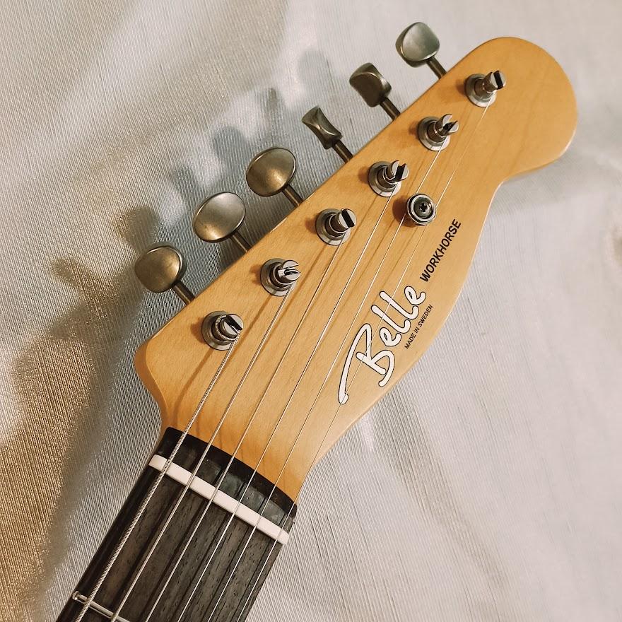 Electronics: Electronics are built entirely in-house, combining high-quality components with flexible pickup options. The Workhorse Series typically uses standard configurations but also serves as a platform for trialing different pickup layouts. Pickups are Belle’s own shop-wound models or carefully chosen commercial sets. The wiring harness features CTS pots, CRL switches, Pure Tone jacks, and vintage Soviet capacitors, all assembled with vintage-style wiring.