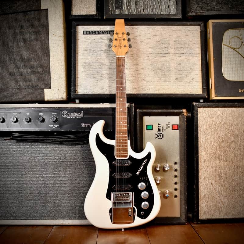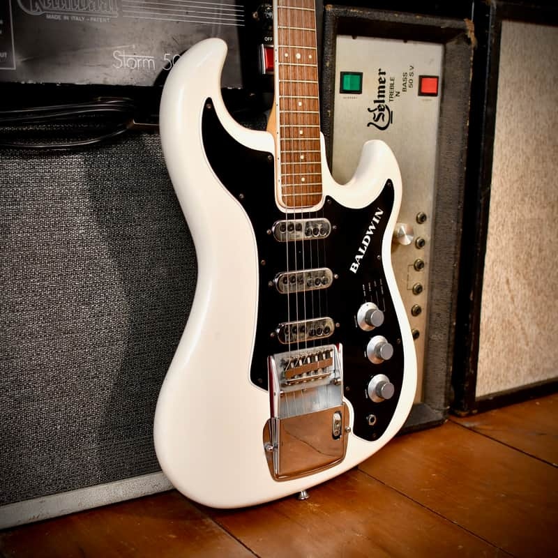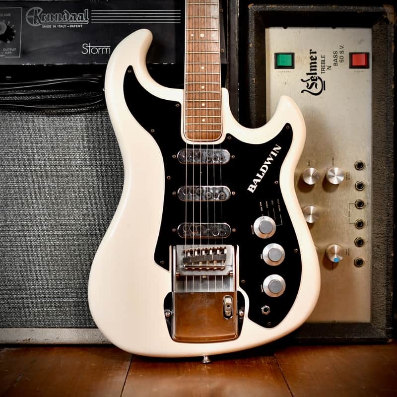 - Pickguard: Black laminated pickguard featuring the Baldwin logo