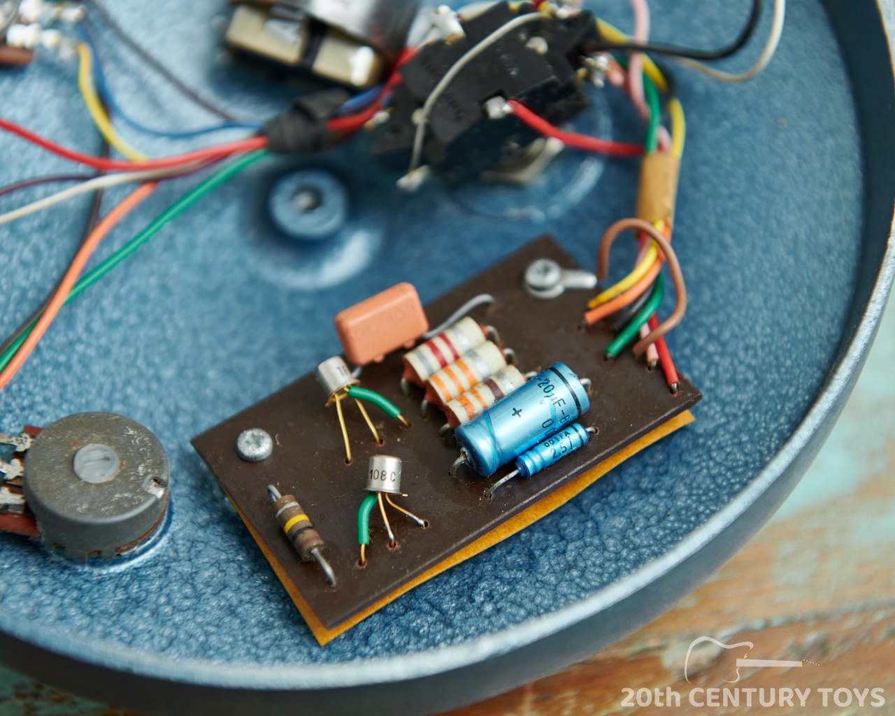 This one is all original and in excellent condition overall, showing only light signs of age. Crucially, it retains its original circuit and BC108C transistors – the high-gain, low-noise silicon variant that helped define the sharper, more aggressive tones of the early ‘70s fuzz era. The only thing missing is the set of rubber feet, long since lost to time – but otherwise, it's clean, complete, and totally unmessed with.