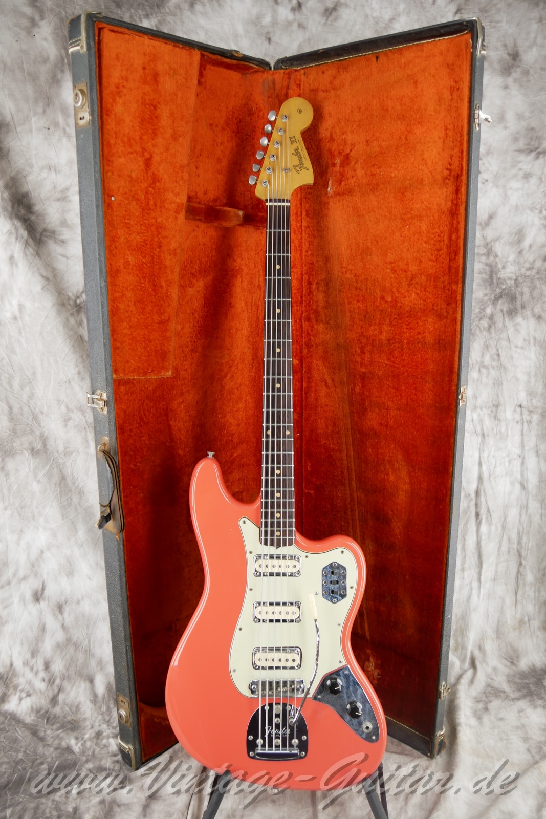 6-string bass, ultra rare first issue [classif. vg ] Rare very early model still with Strat-style pickupsin metal-frames, 3 switches and slab fretboardPots dated 62, some new wiresOld professional refinish w. poly laquerFretboard made of Brazilian rosewood (comes with CITES)Comes with later Fender case