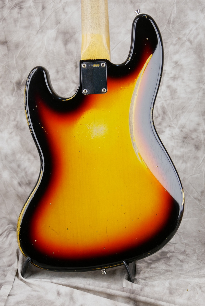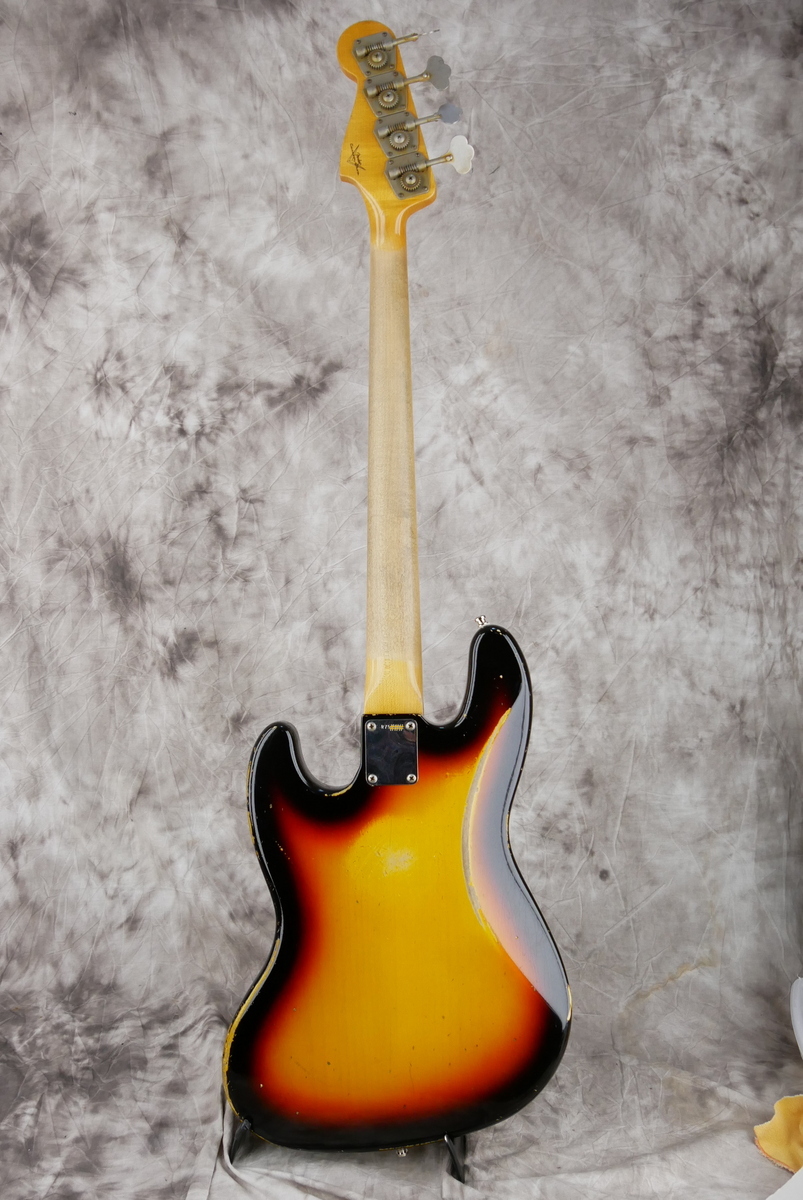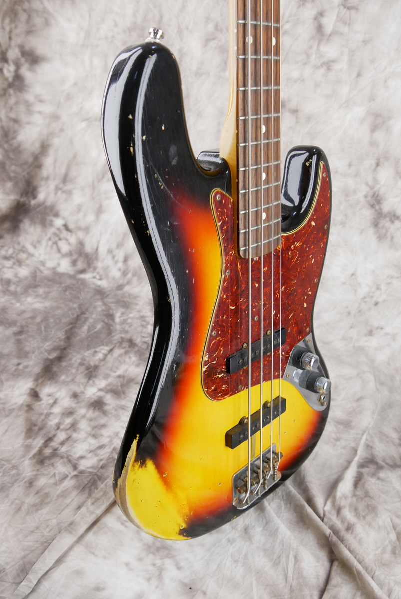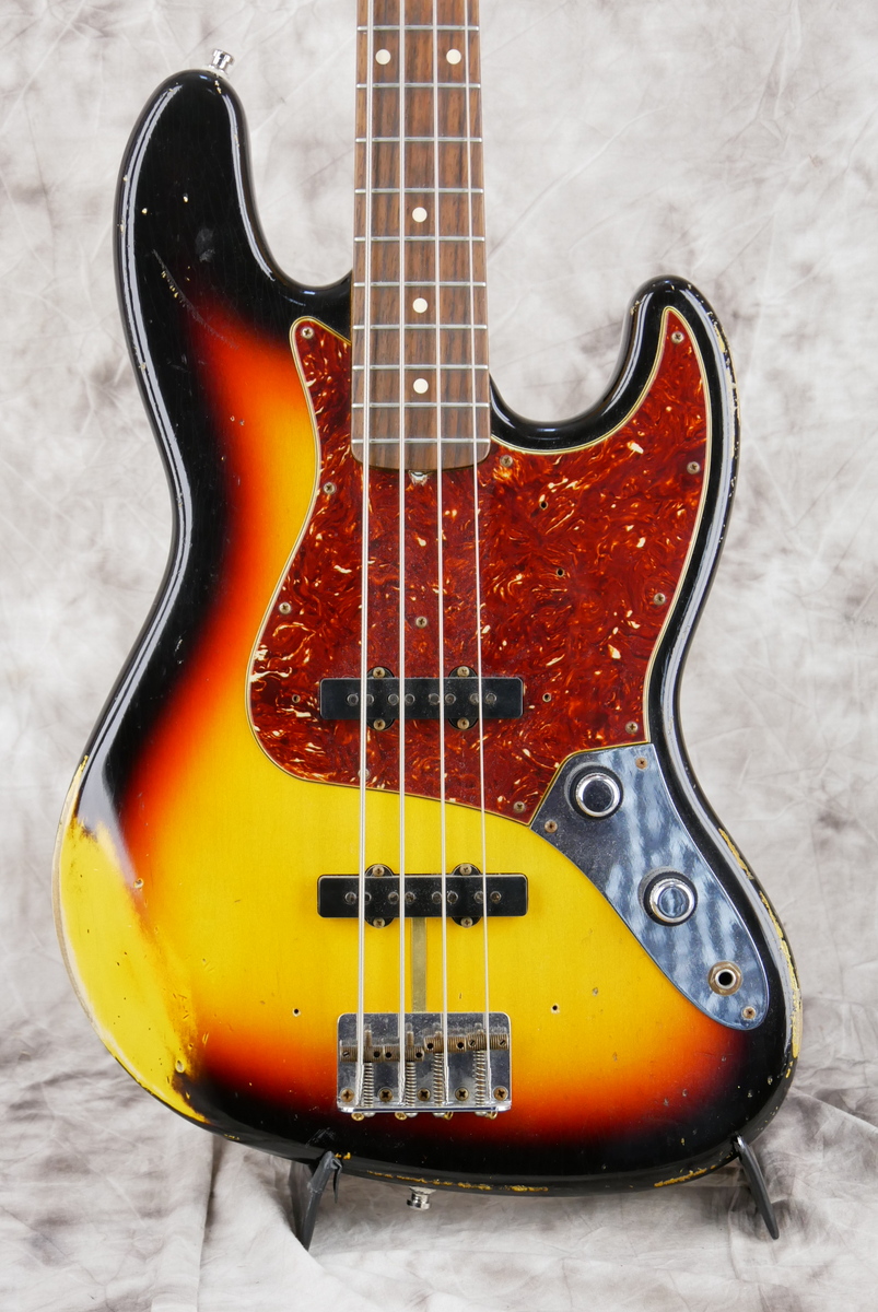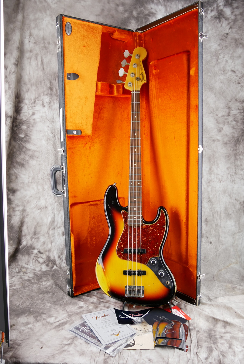 Custom Shop stack knob [classif. exc ] With original case and all papersBody Material: 2pc Alder Shape: Jazz Bass Colour: 3-Colour Sunburst Finish: Nitrocellulose Lacquered Neck Material: Quartersawn Maple Neck Shape: '60s Jazz Bass U Neck Finish: Nitrocellulose Lacquer Fingerboard Material: Rosewood Fingerboard Radius: 9.5" Frets: 20 Medium Jumbo Inlays: Vintage Clay Nut: Bone Nut Width: 38.1mm:Pickups: Hand-Wound Vintage Jazz Bass Relic