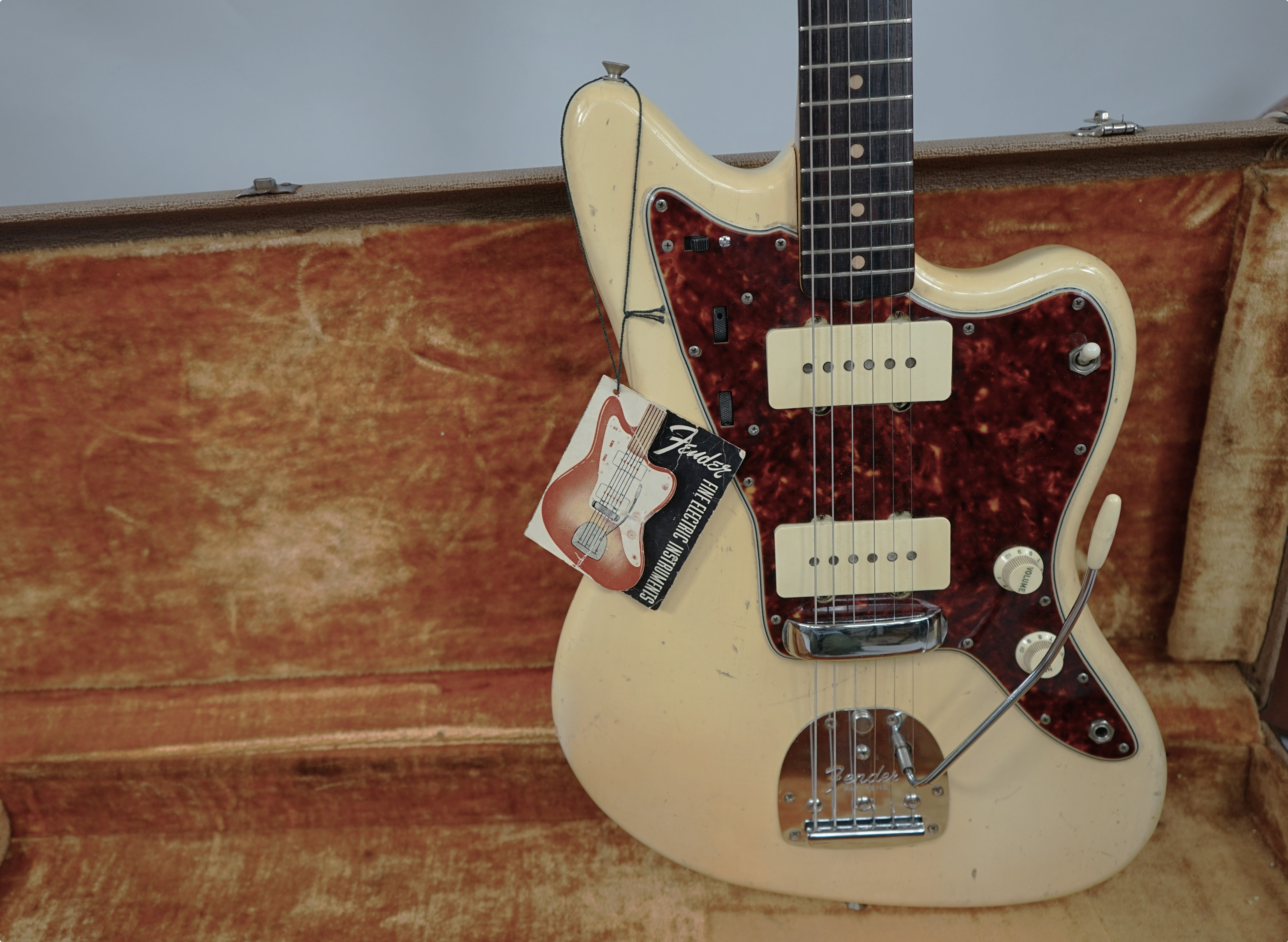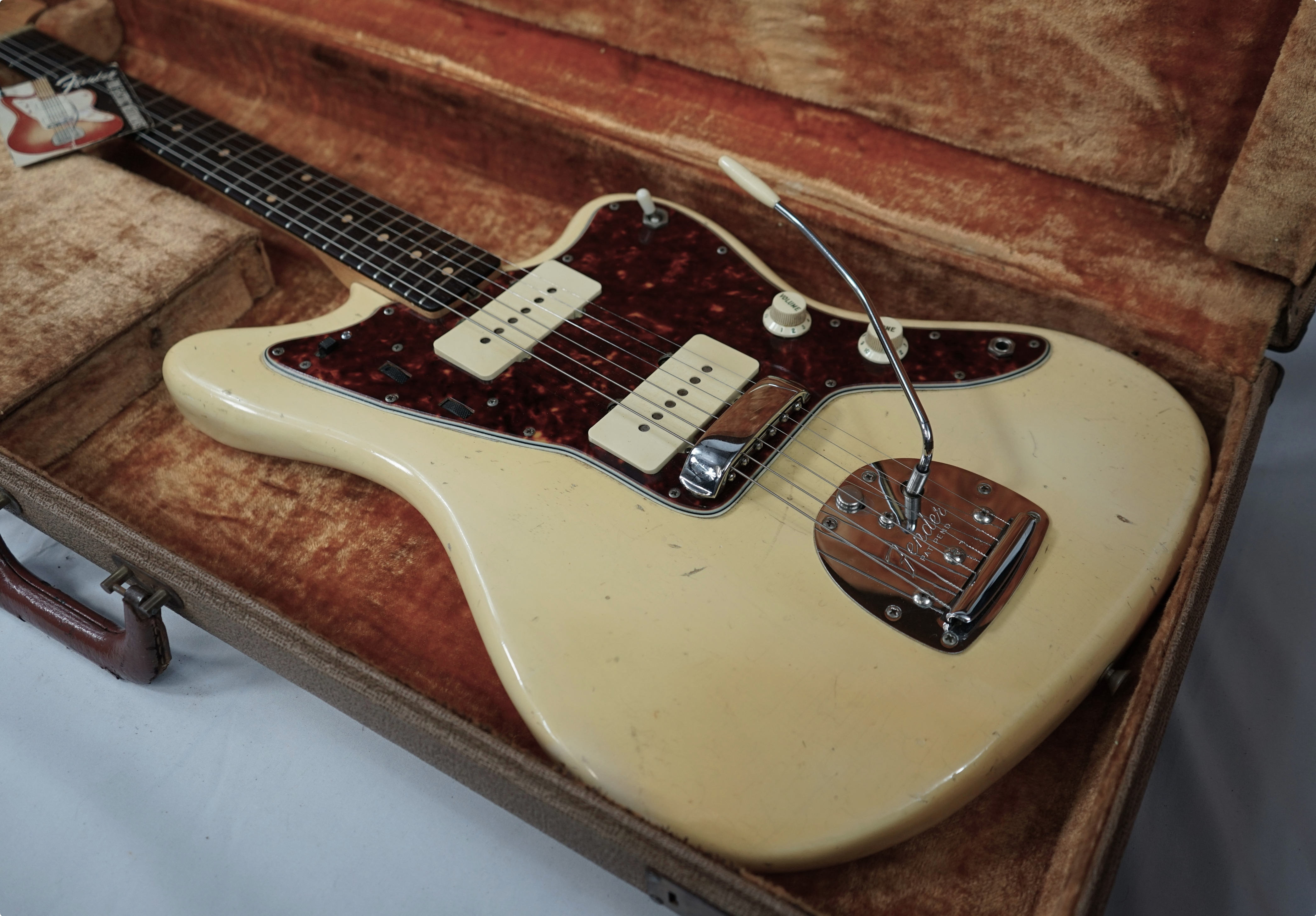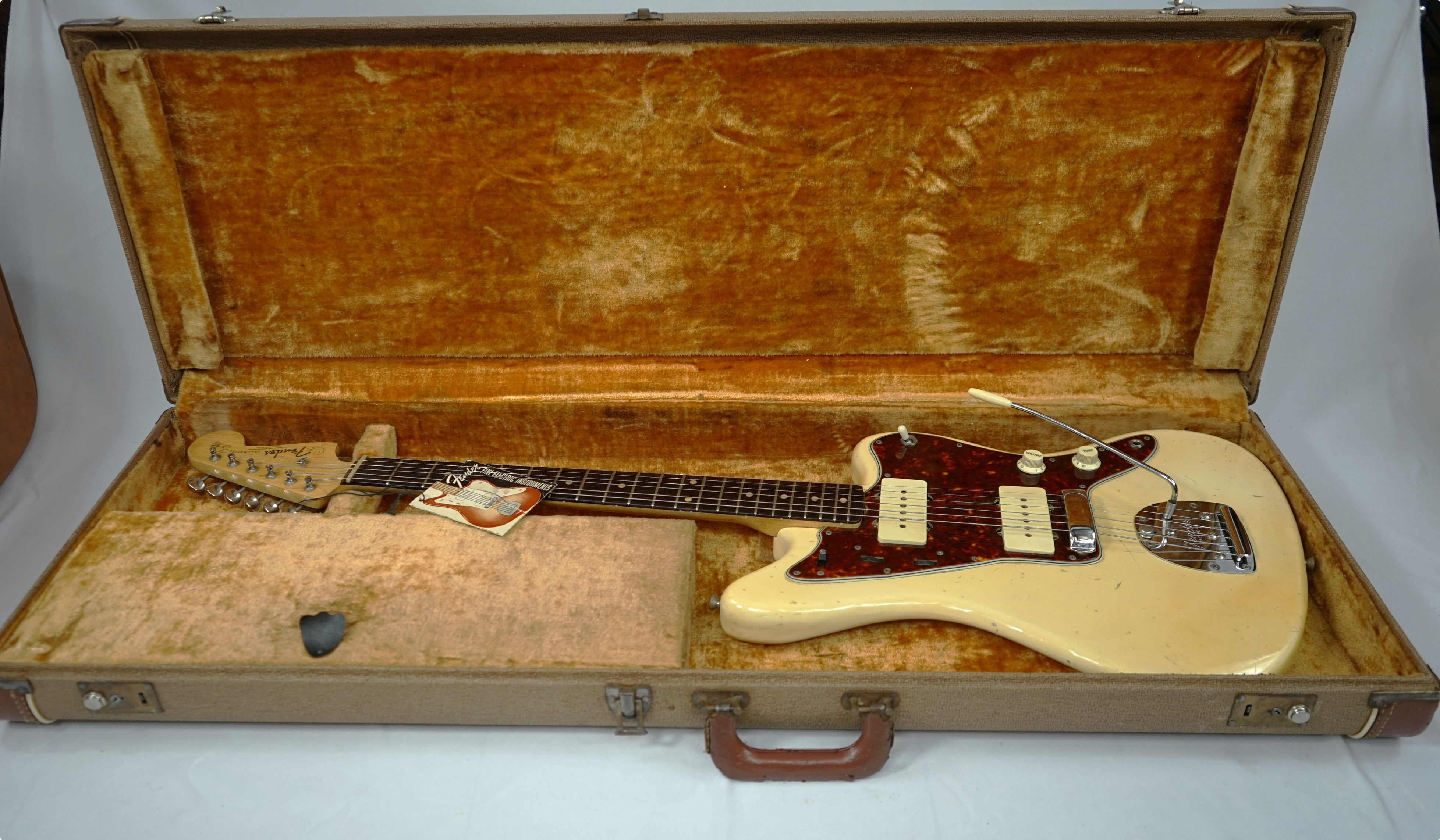 1961 Fender Jazzmaster in see Thru Blond with original case and tags. All original minus 3 screws on the guard, I have no idea why someone would replace them but they did.