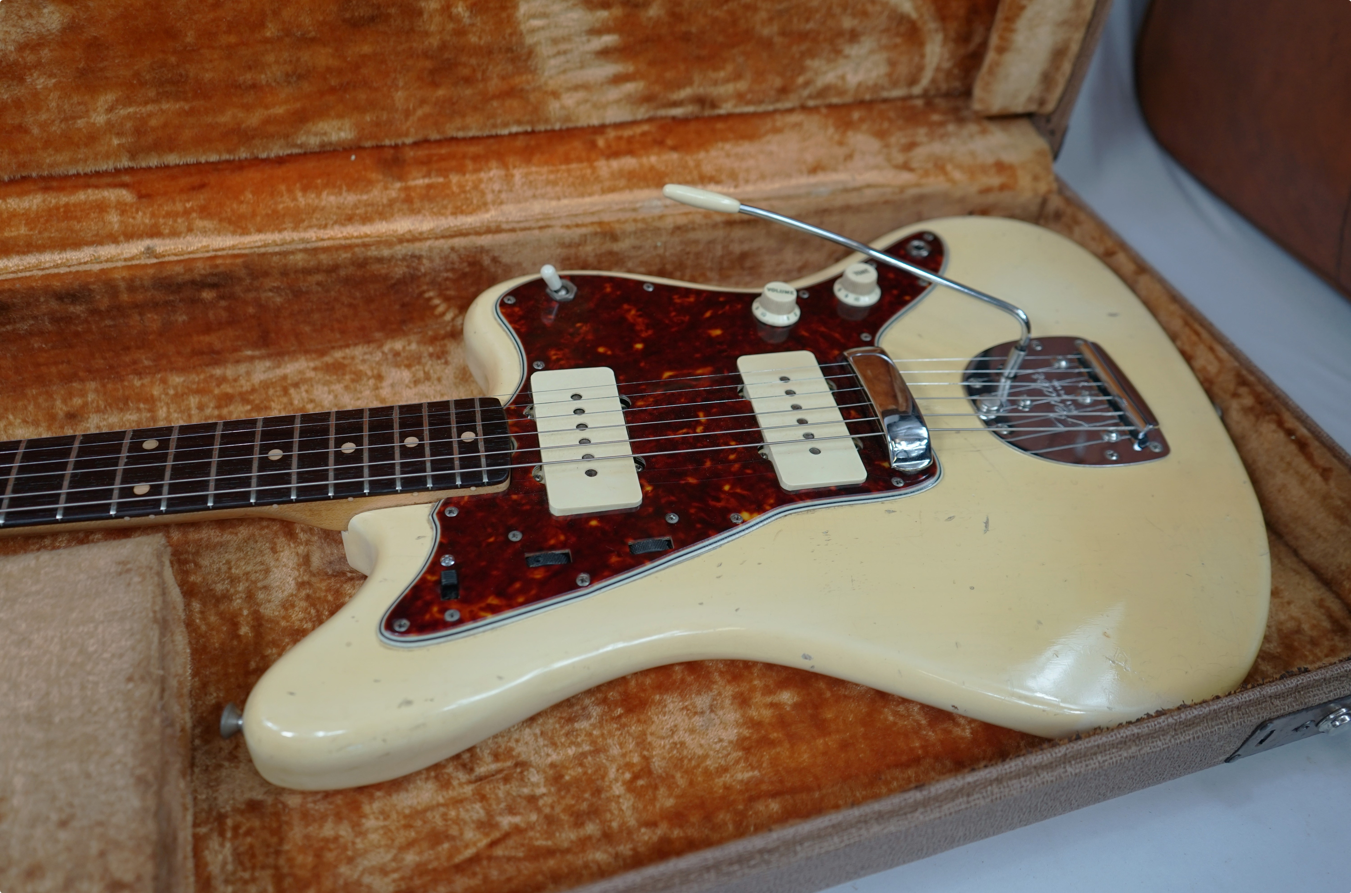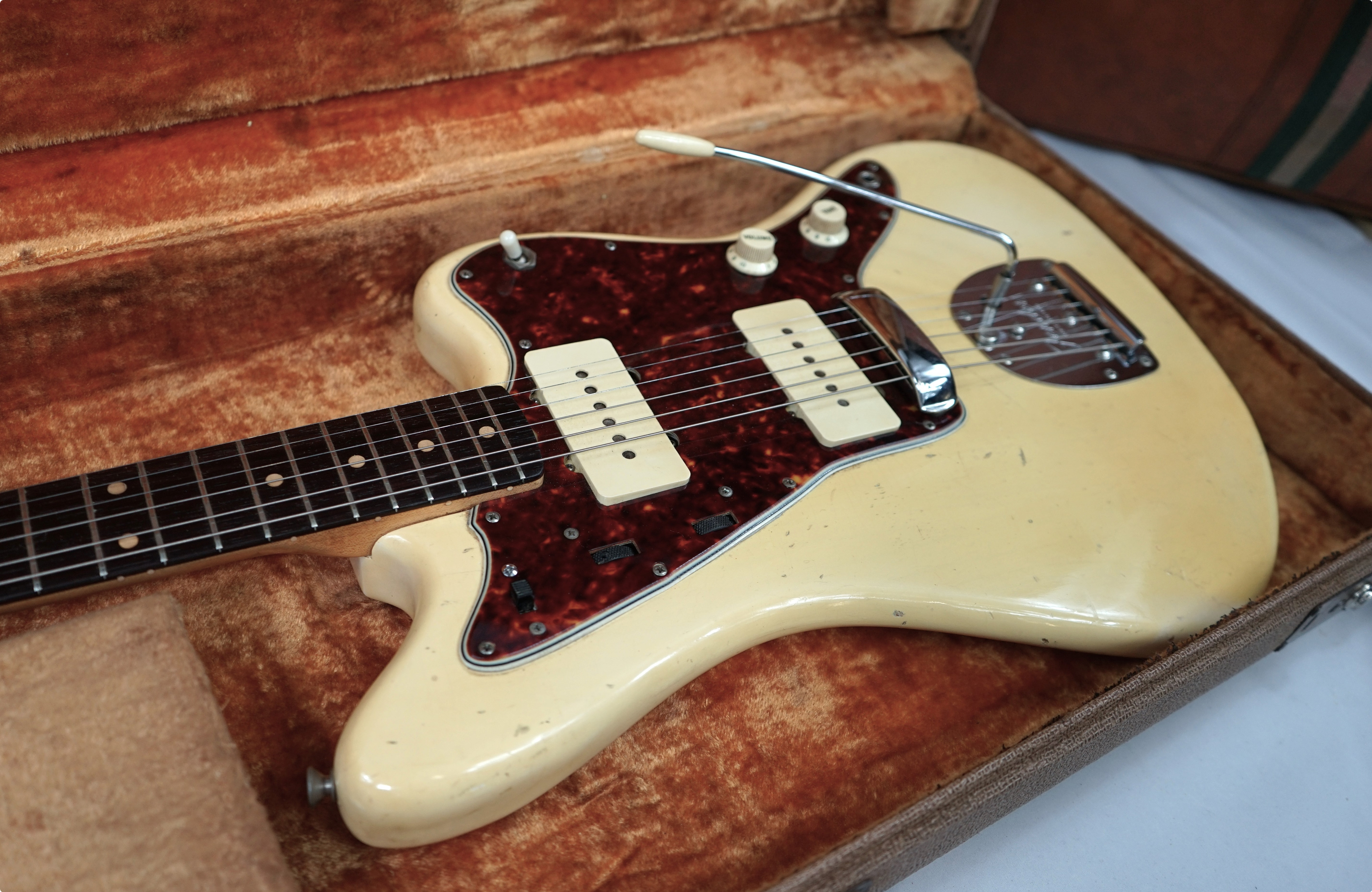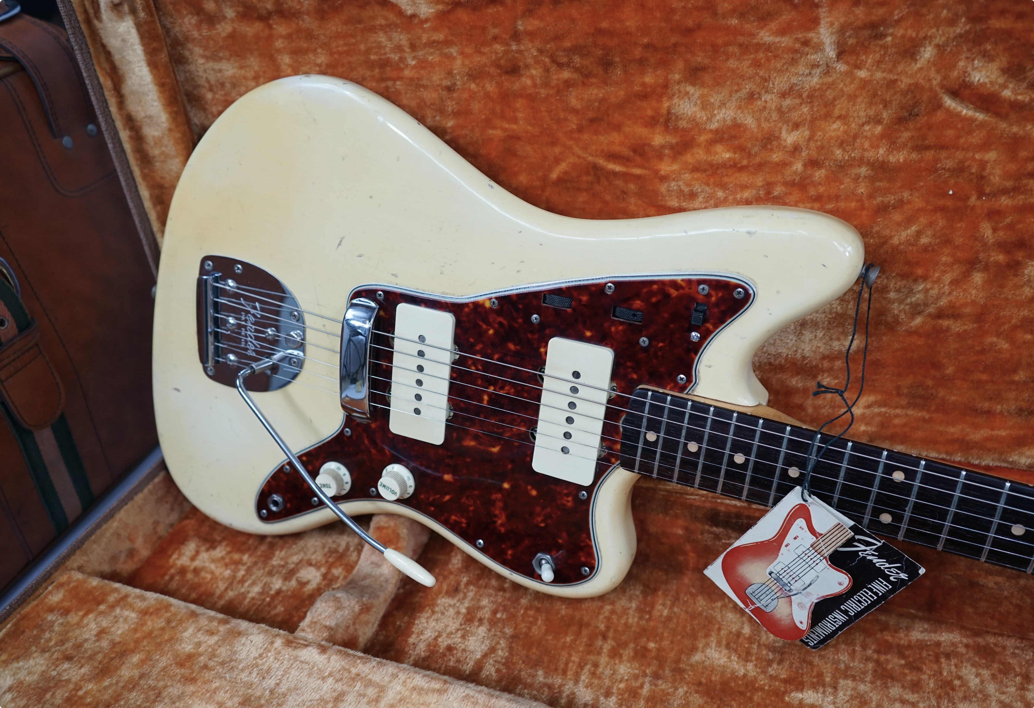 1961 Fender Jazzmaster in see Thru Blond with original case and tags. All original minus 3 screws on the guard, I have no idea why someone would replace them but they did.
