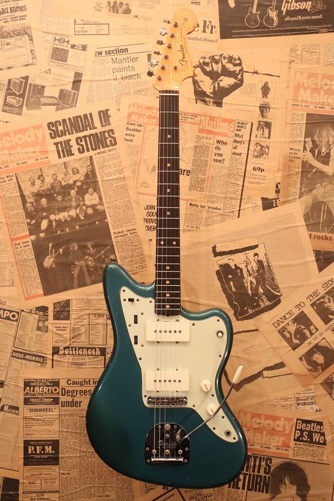 Another interesting detail is the headstock finish. Early custom color Jazzmasters often retained a standard natural headstock, whereas later examples typically featured matching headstocks finished in the body color.