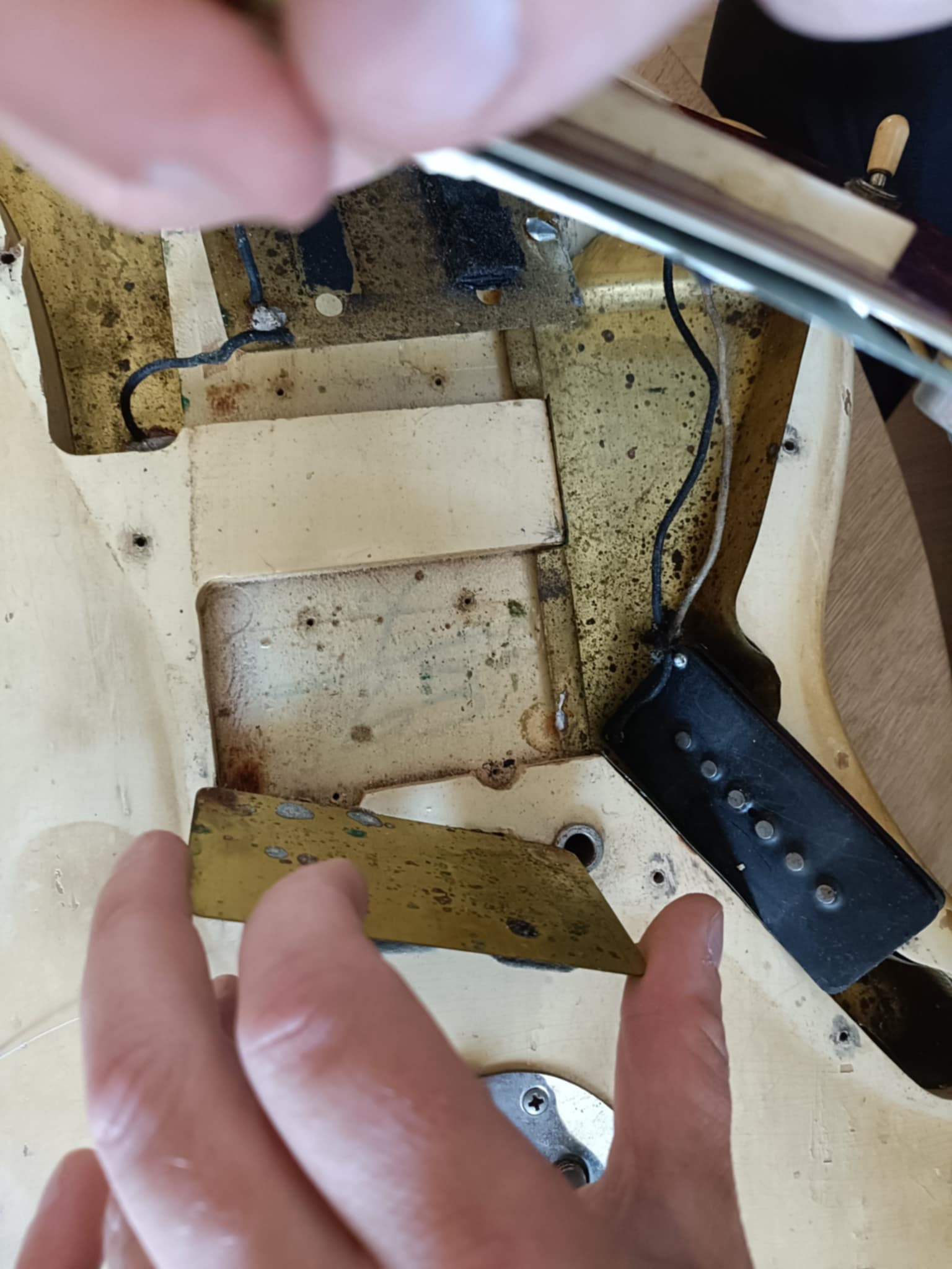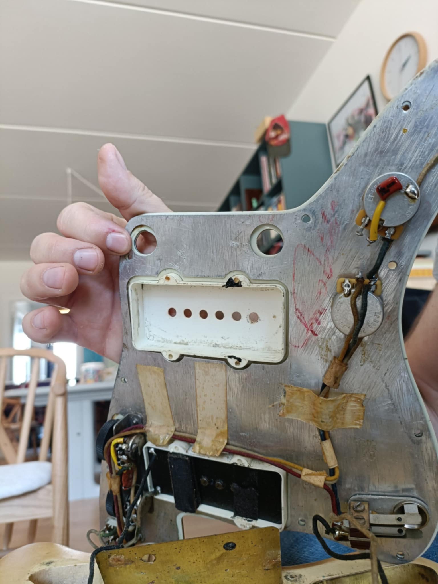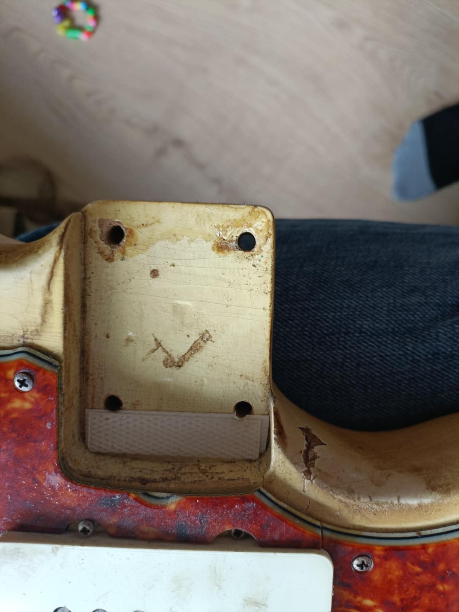 The guitar shows honest playing wear accumulated over decades of use. The new owner may choose to clean it for a fresher appearance, though its current patina tells the story of a well-loved instrument.