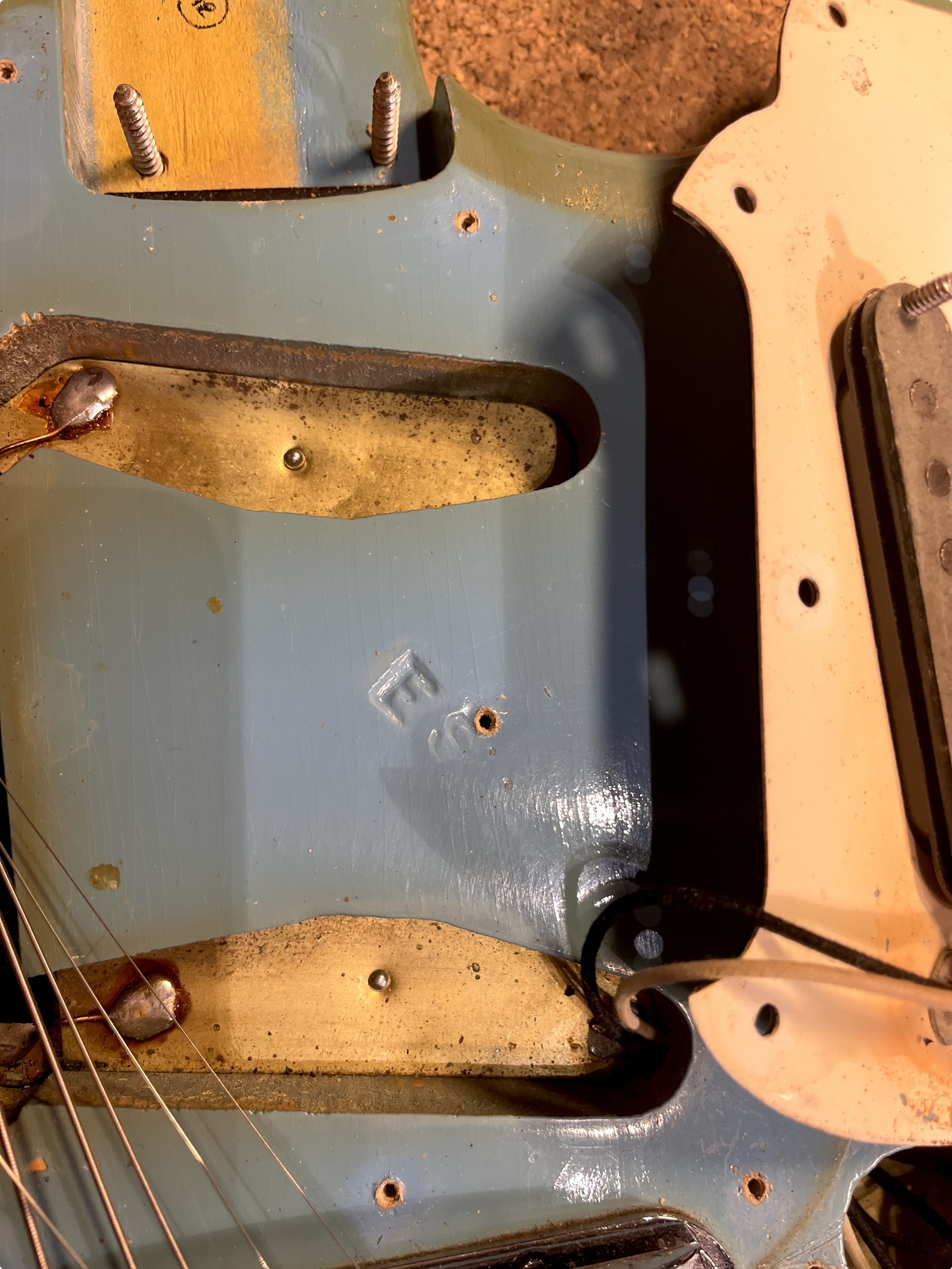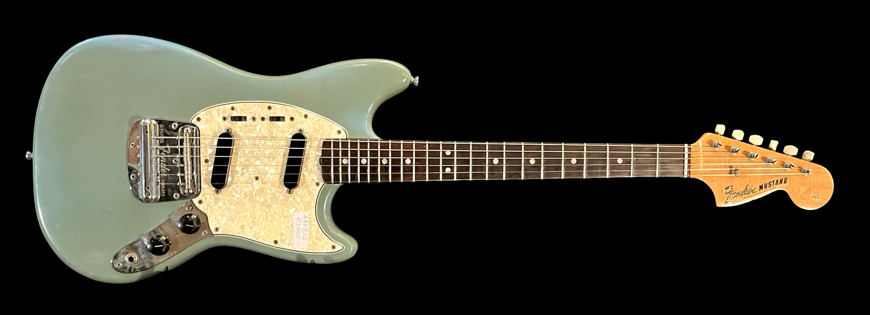 Fender Mustang in original Mustang blue finish from 1966. Original electronics, pickguard, neck plate and pickguard. Comes with original hard case.