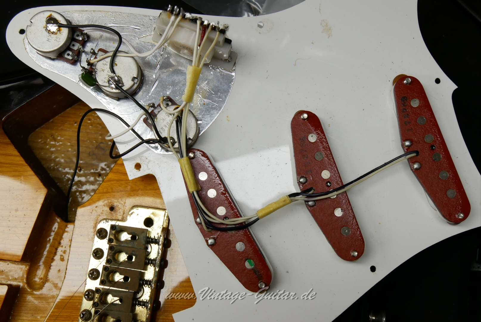 red bobbin pickups [classif. exc -] One piece maple neckSome finish damage on the upper side near arm-rest, otherwiese exc. conditionUS-made red bottom pickups stamped 1982No neck dateComes with non orig. case