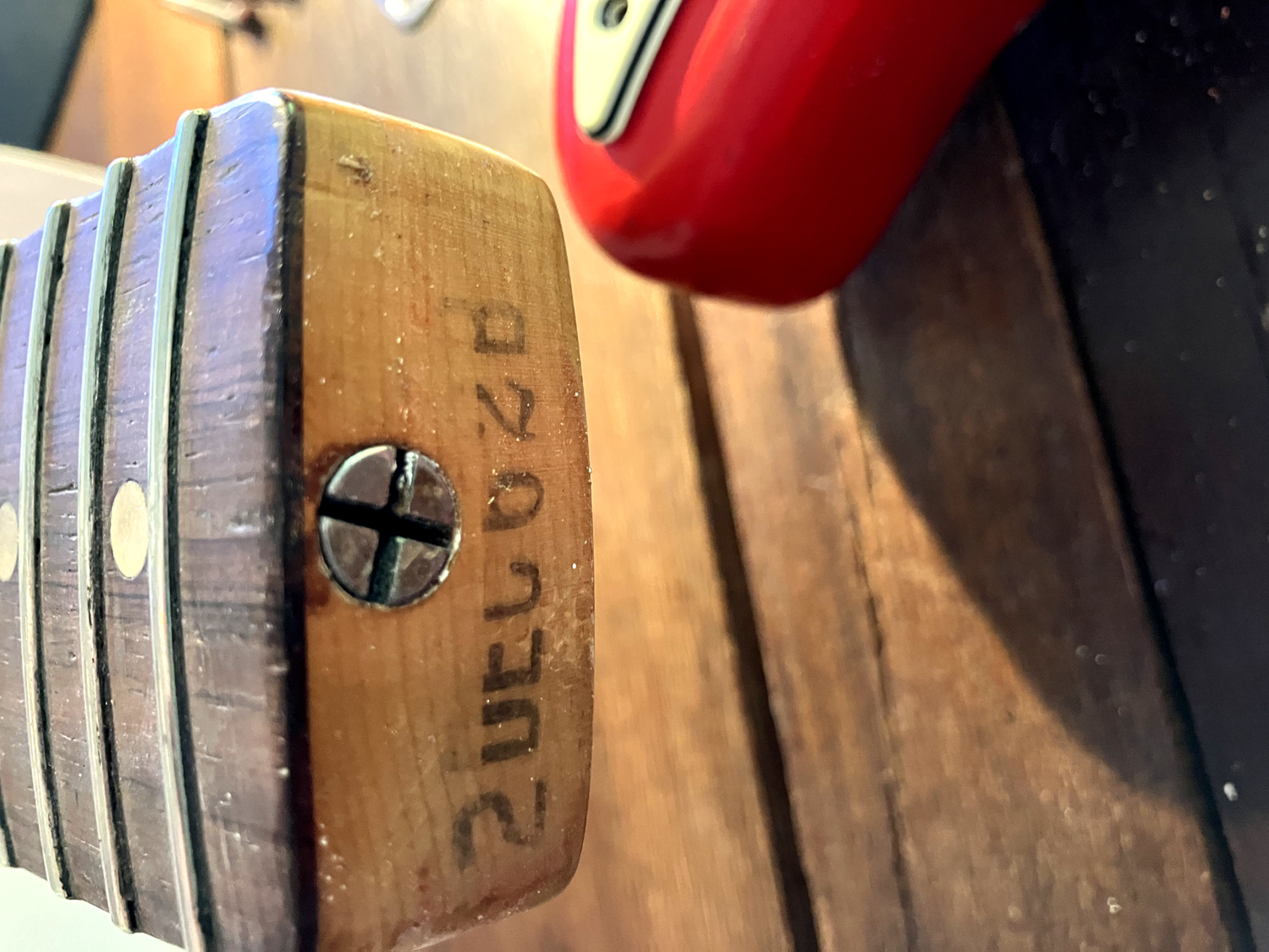 This pre CBS Stratocaster from December 62 in Dakota Red finish had one owner only and has been tucked away in its hardcase about 40 years.