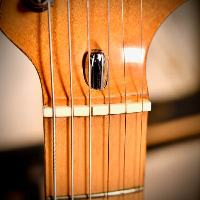 - Hardware: Chrome-plated; Fender "F" stamped tuning machines
