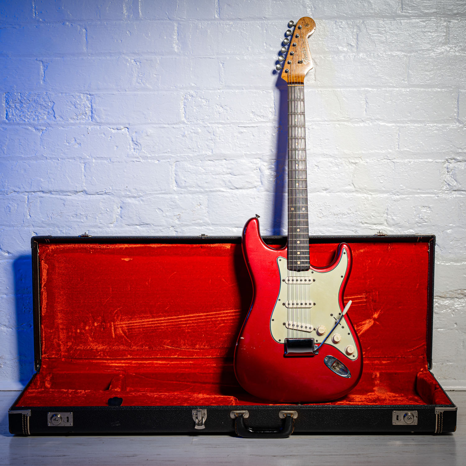 The above instrument is an original 1960 Fender Stratocaster that was returned to the Fender Company in 1964 to be finished in Fender's latest Custom Colours that being Candy Apple Red