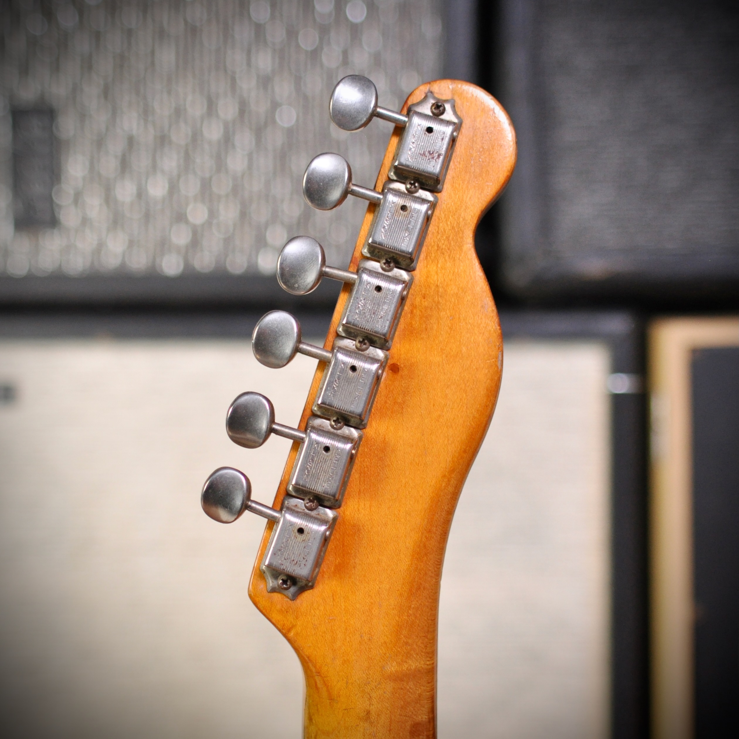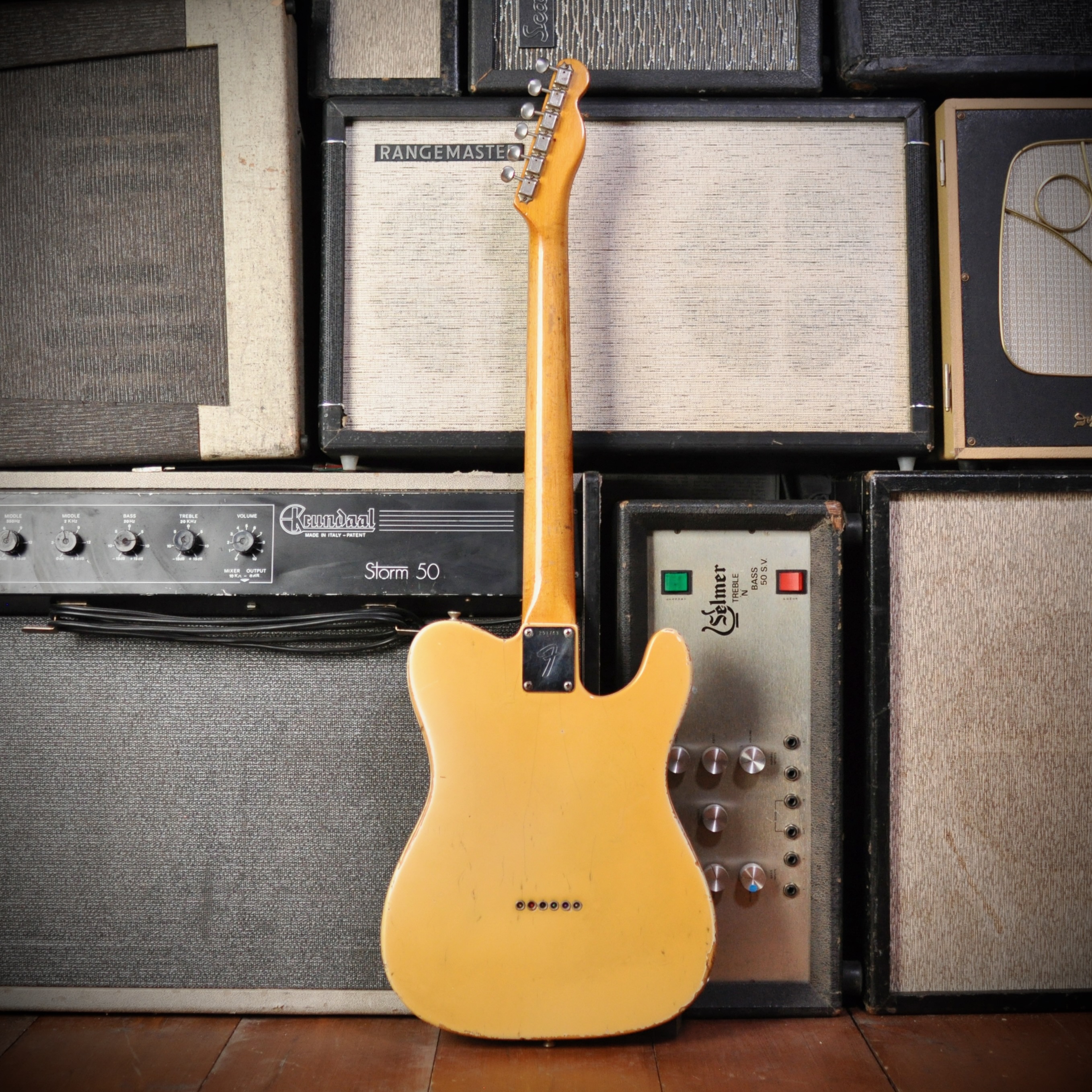 - Logo: Transition-era "Fender Telecaster" decal in gold with black trim