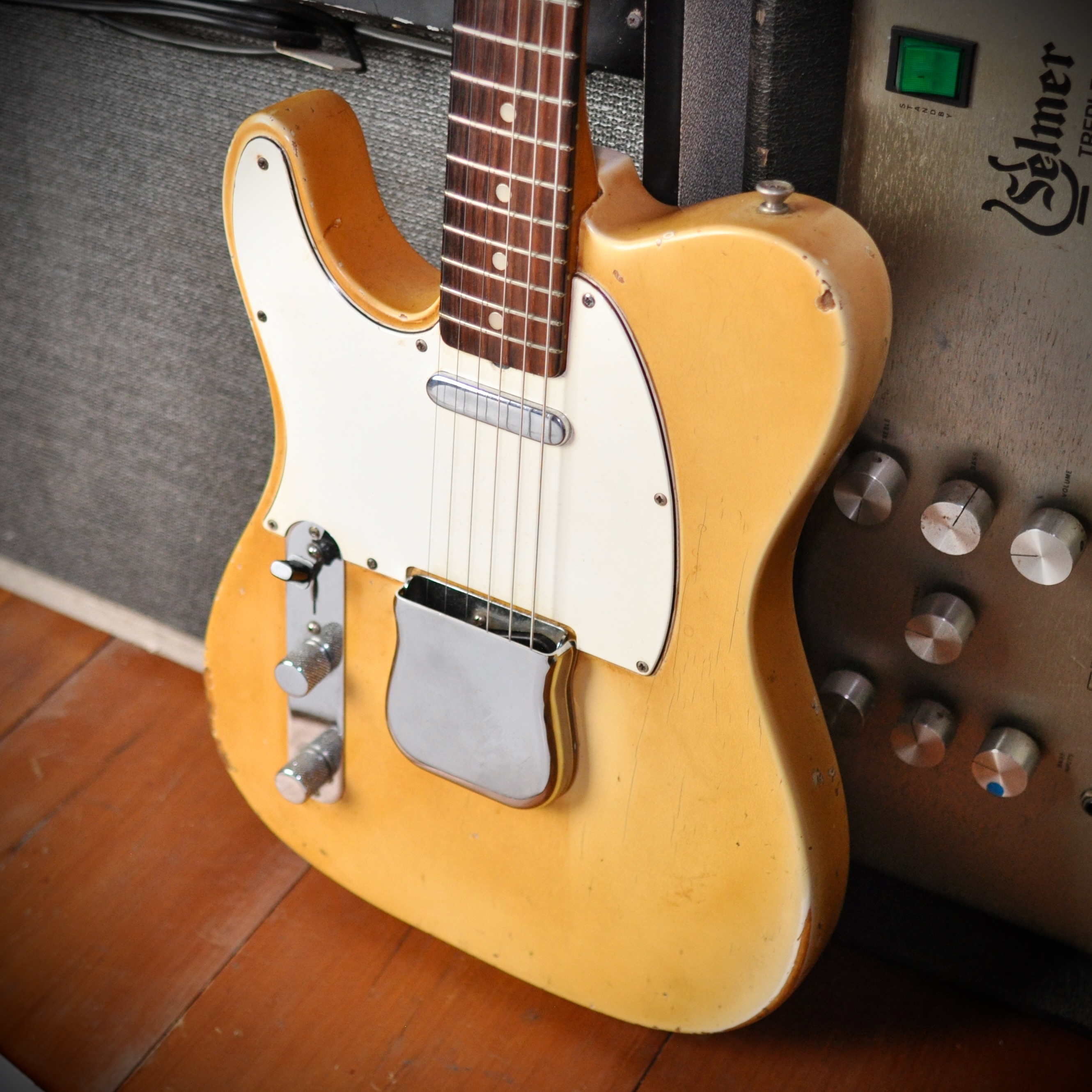 This 1967 left-handed Fender Telecaster is a truly rare bird! A beautiful example of the final era of Leo Fender's original manufacturing standards before CBS corporate changes fully altered production methods. The "Blonde" transparent has acquired a lovely dreamy "butterscotch” hue over the years. Left-handed guitars from this era were produced in extremely limited quantities, and some 1967 lefties were famously used by right-handed players like Jimi Hendrix or players looking for his "upside-down" tone, but an original factory-built left-handed model is a high-value collector's item.