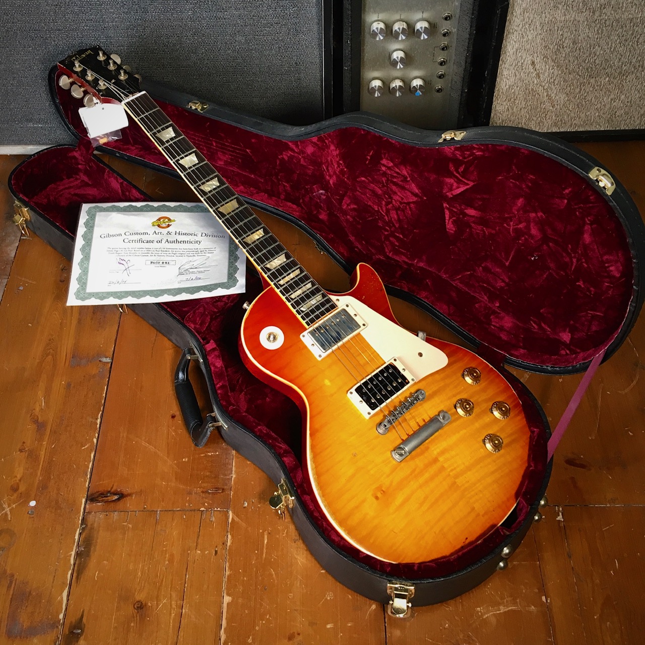 We are happy to offer the following rare and highly desired Gibson aged Jimmy Page Les Paul Number 1, details as follows