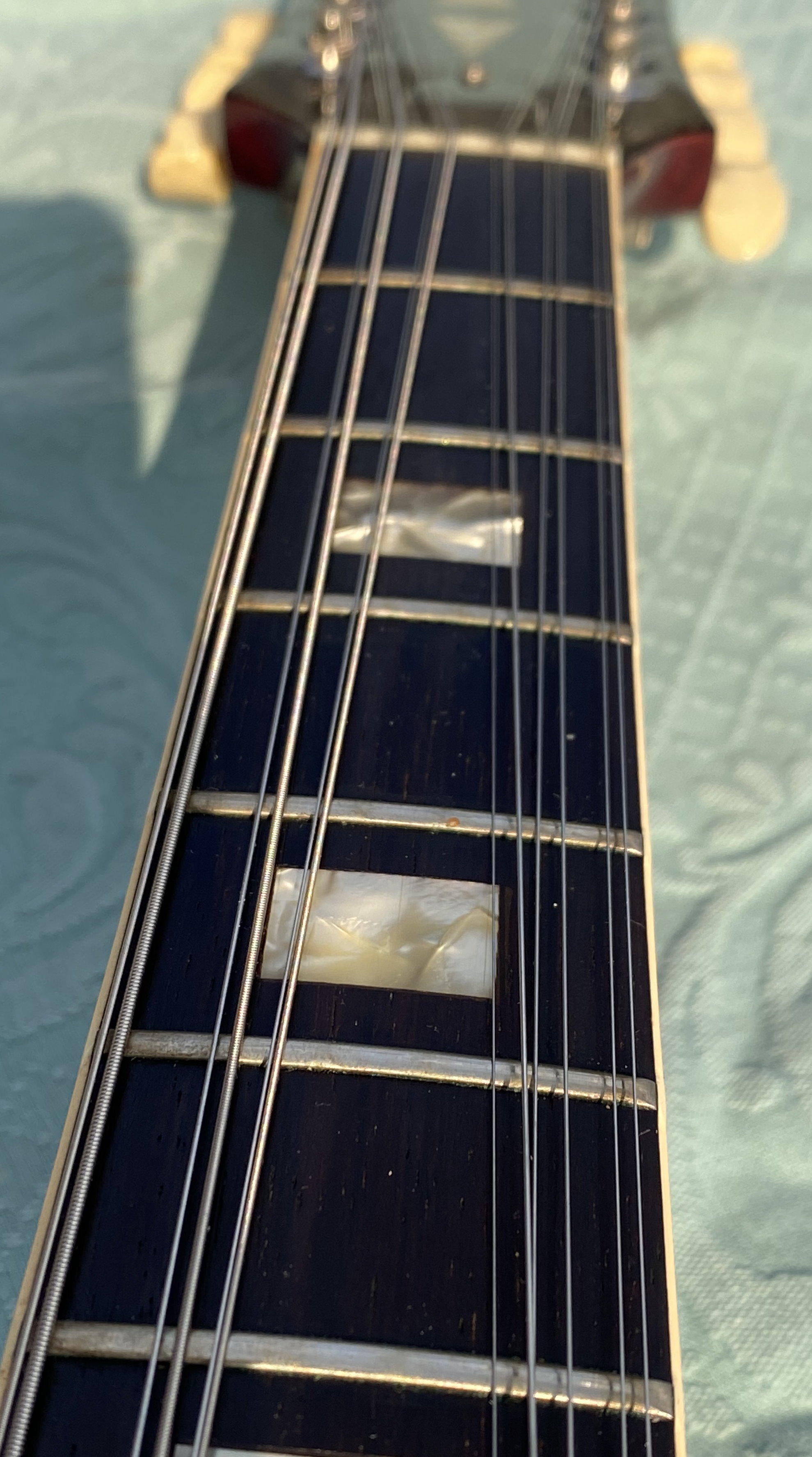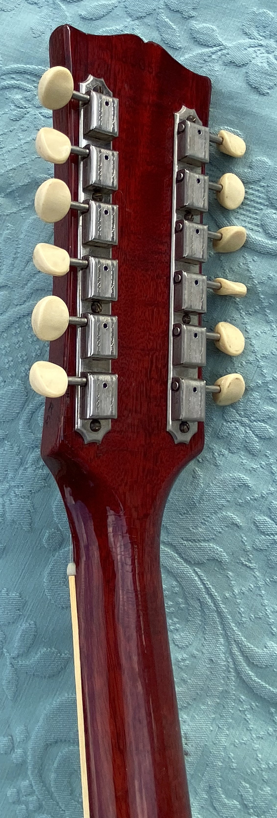 Gibson's first single-neck electric 12-string, the ES-335-12 was introduced in mid-1965 in response to the 12-string craze which followed George Harrison's featuring of a Rickenbacker 360/12 in the prior year's "A Hard Day's Night". The model was a straight adaptation of the standard 335 design, with only an extended headstock and 12-string tailpiece as alterations. The 12-string ES-335 was fairly successful over the next couple of years but was phased out of production in 1970, so is now not nearly as plentiful as its 6-string sibling.