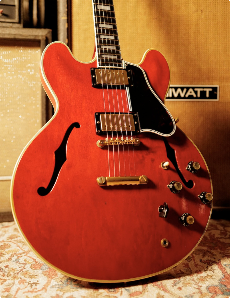 Finished in Cherry with gold hardware, the instrument reflects the premium specification and craftsmanship associated with Gibson’s higher-tier models of this period.