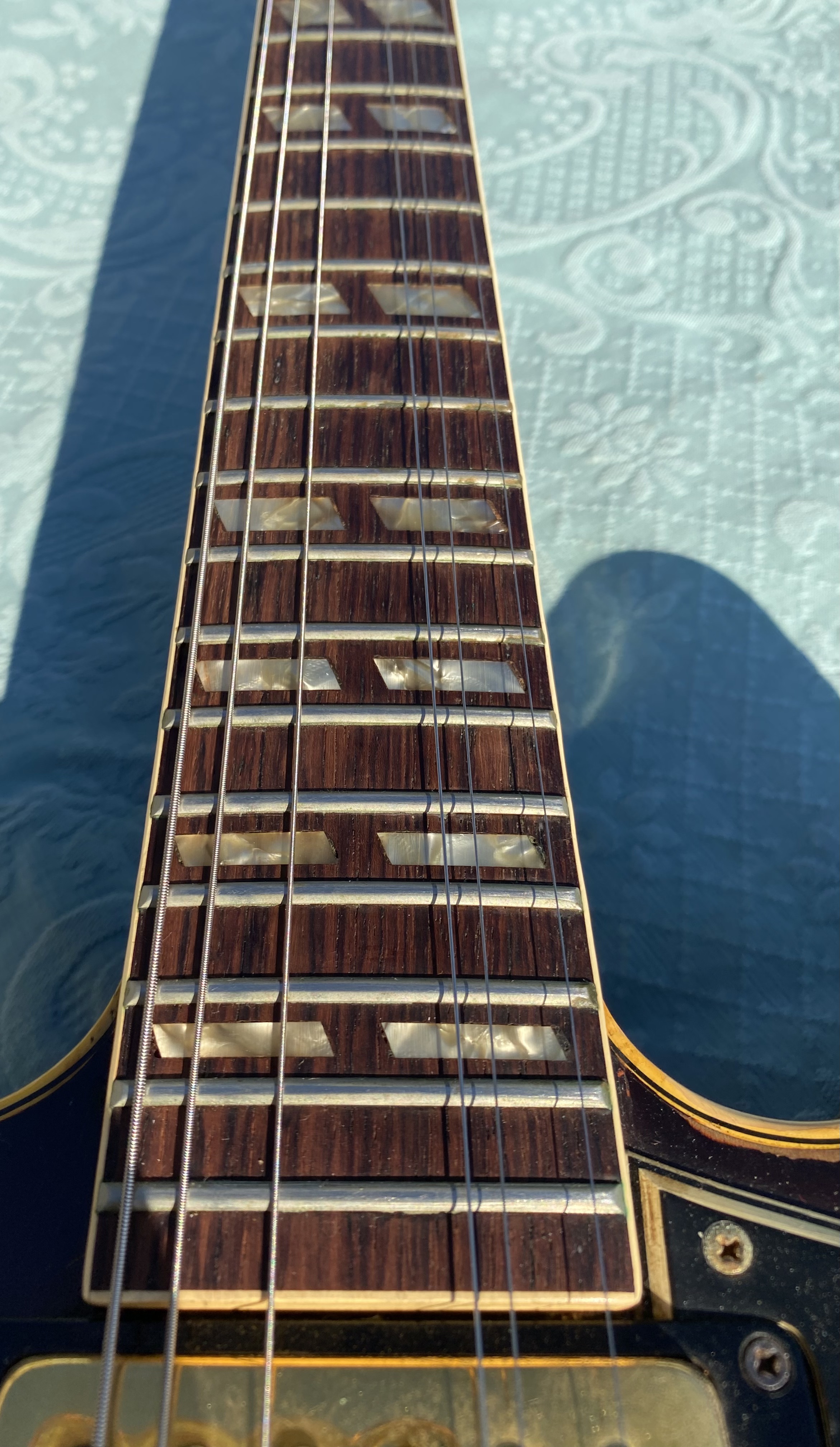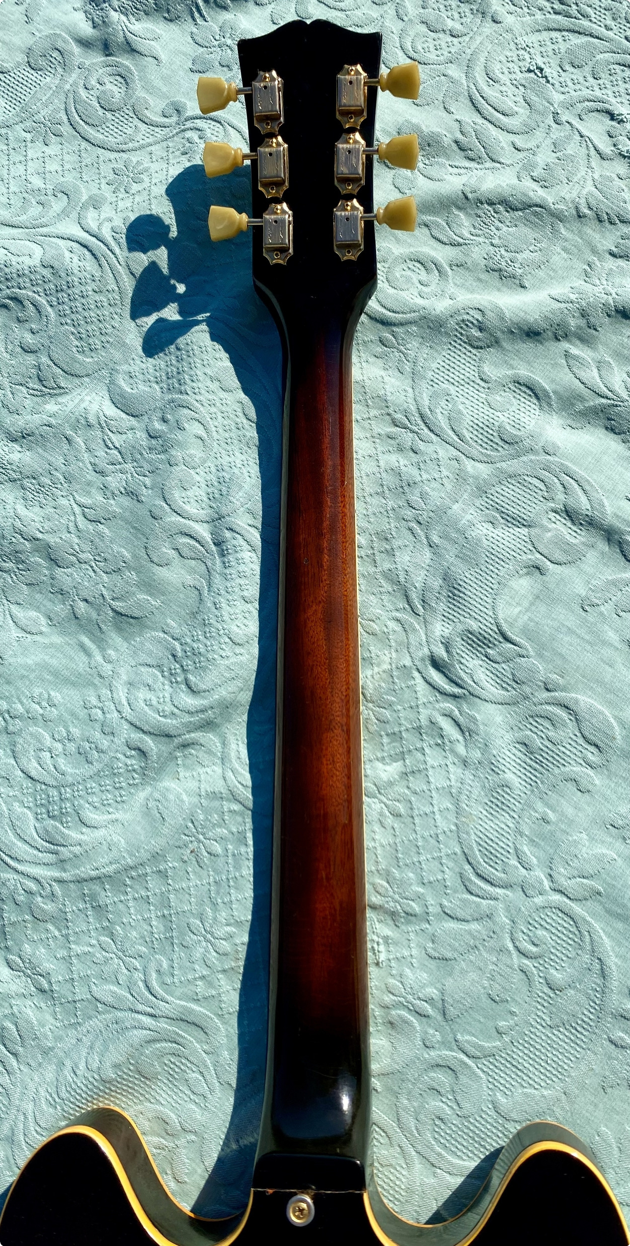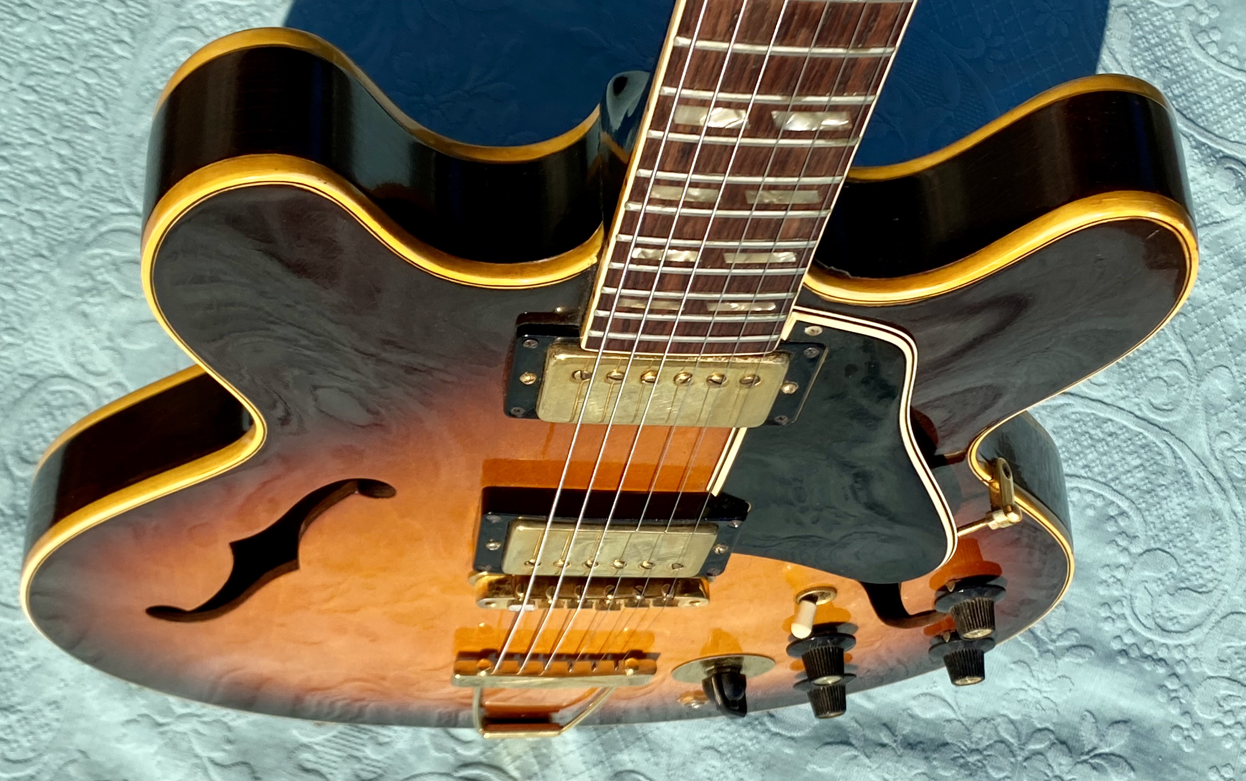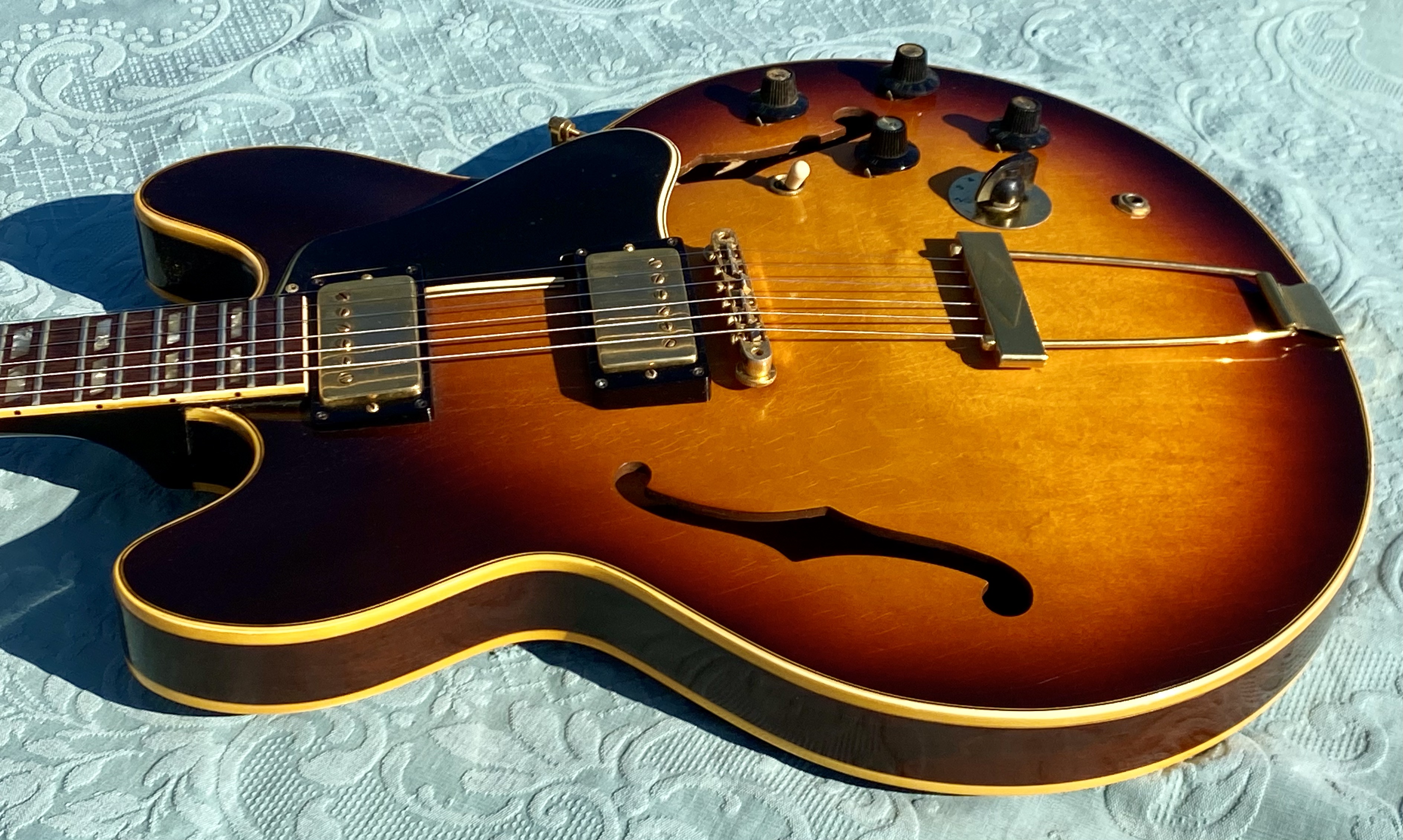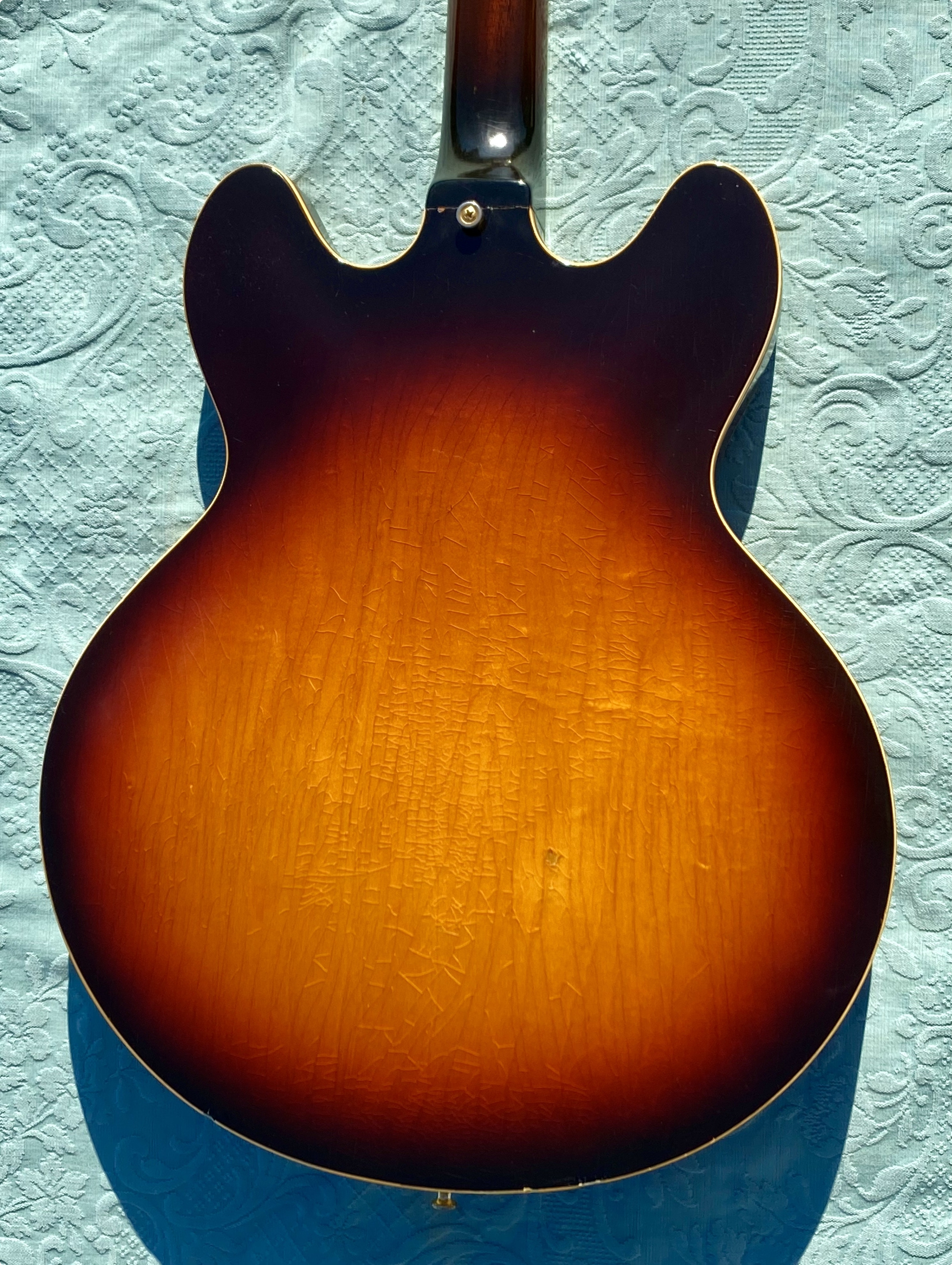1967 ES-345 TD Stereo, Sunburst, vari-tone, only 501 made, Very nice conditions, fast neck with very good frets (prof refretted) and low actions. Orig. Kluson Deluxe tuners. All Original also thePatentsticker pickups. No breakage, some little ding&dong. Checking in original finish as normal. Orig. Pat. Number Bridge and Tailpiece. Come with Original Hard Case Yellow interior. Strong SoundSUPER ! code GI3333