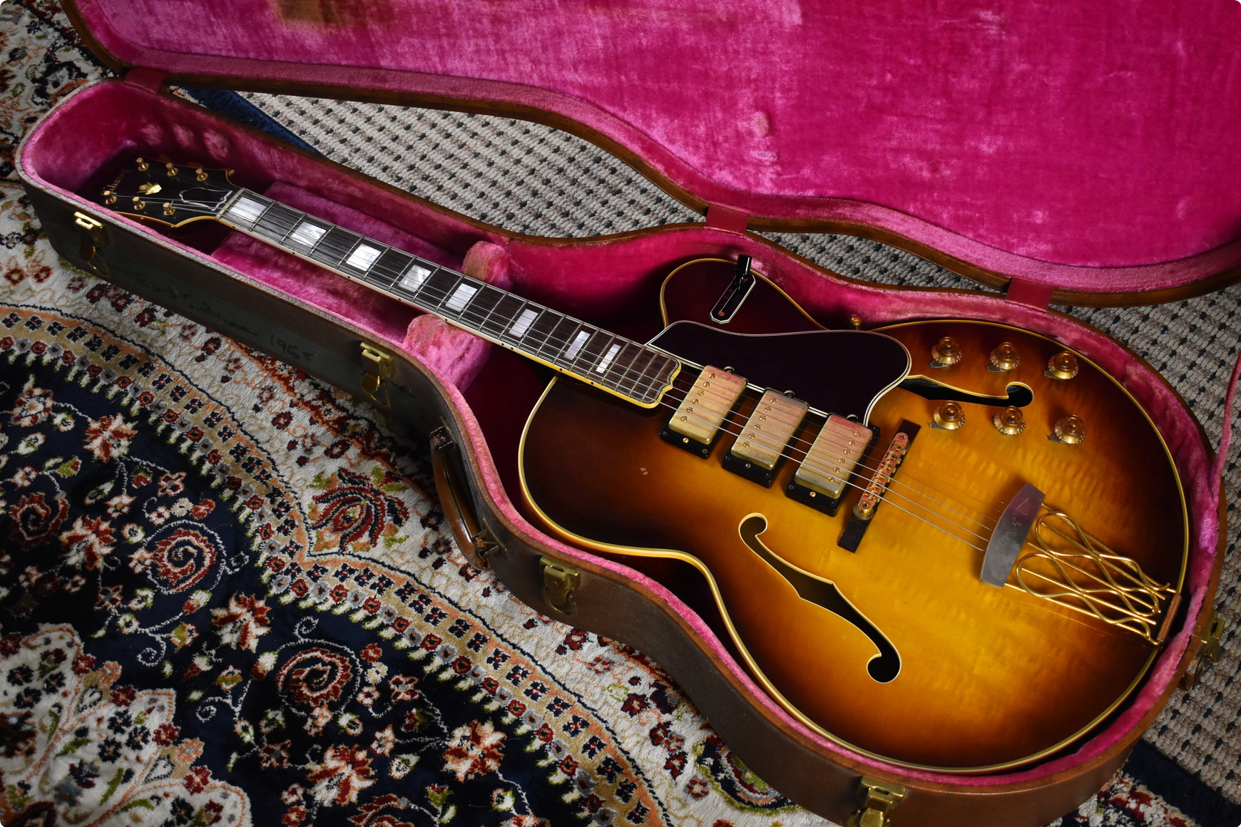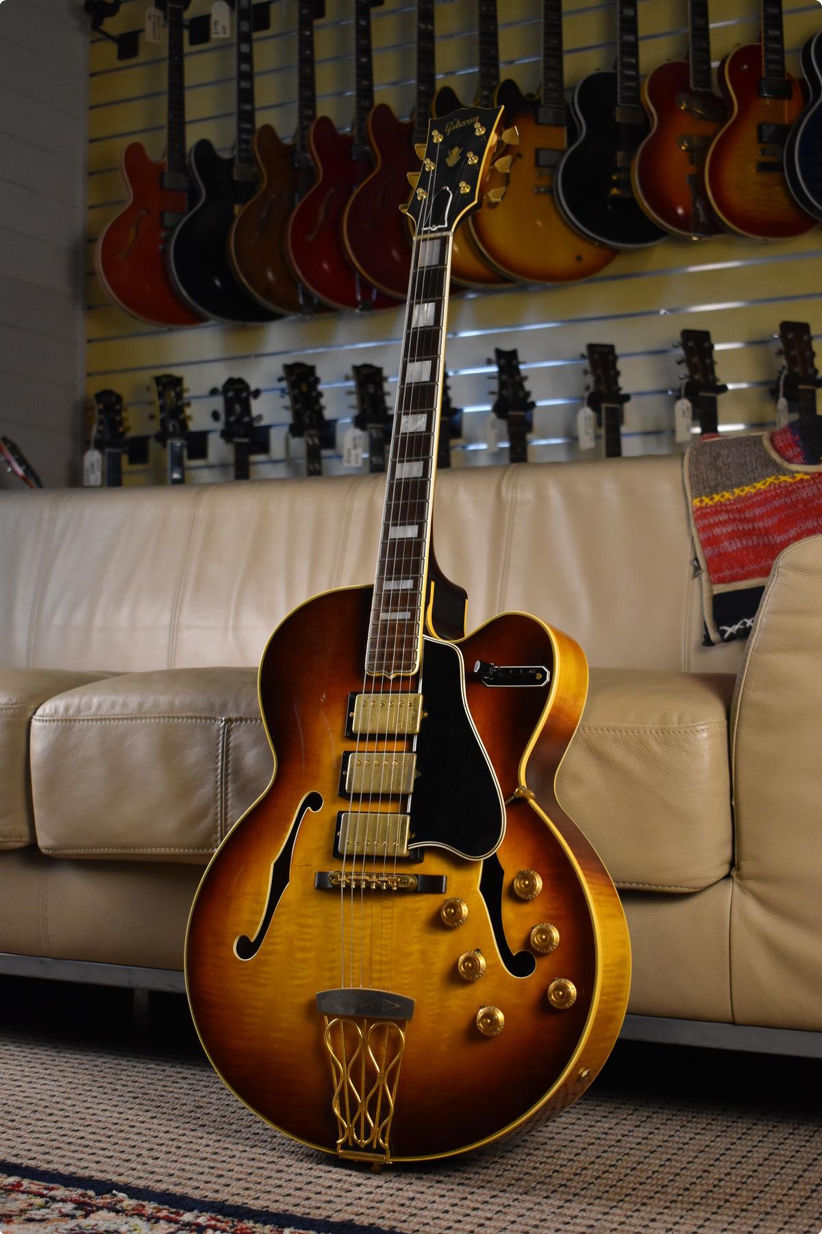 Now available on consignment, a 1958 Gibson ES-5 Switchmaster in its original sunburst finish.