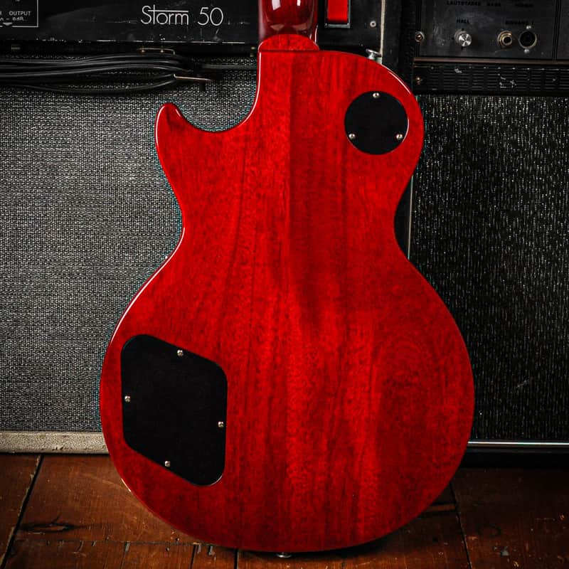 This 2025 Gibson Les Paul Standard in Cherry Sunburst pays tribute to the Golden Era, featuring a mahogany body with a maple top, a rounded '50s-style mahogany neck with a rosewood fingerboard, and Burstbucker pickups with Alnico II magnets. It includes classic hardware like an ABR-1 Tune-O-Matic bridge, a stop bar tailpiece, and vintage-style tuners, providing a classic, powerful tone with enhanced clarity.