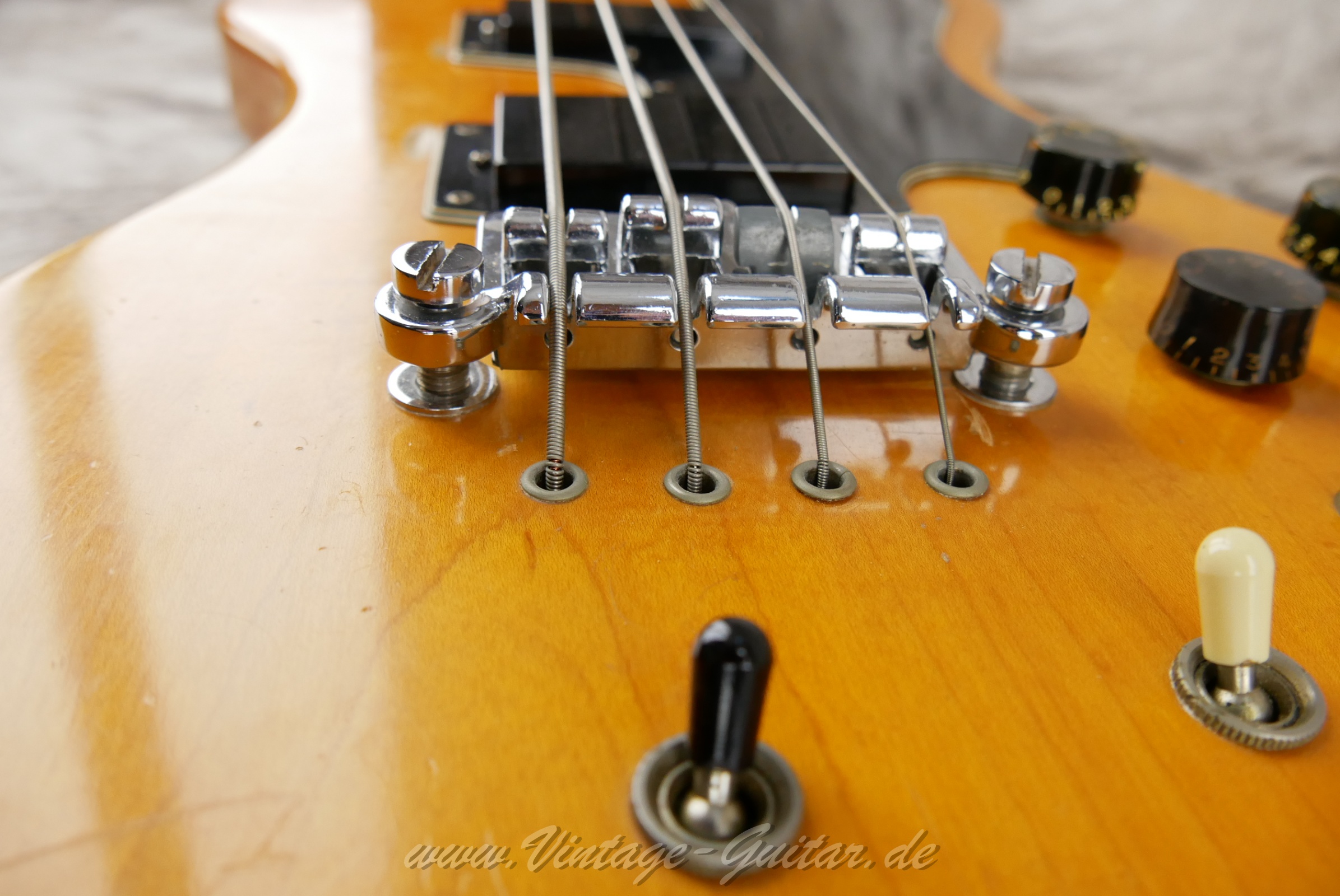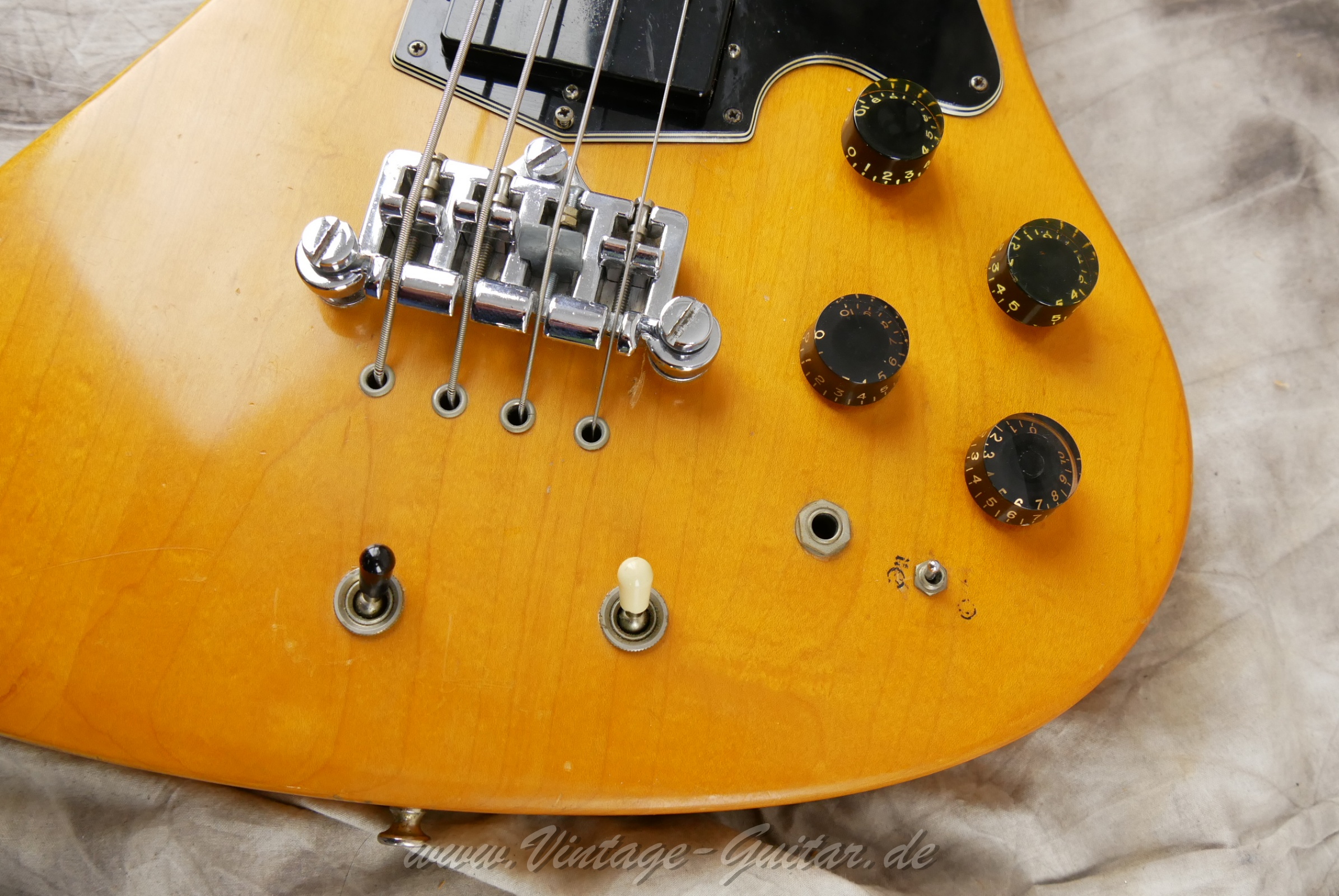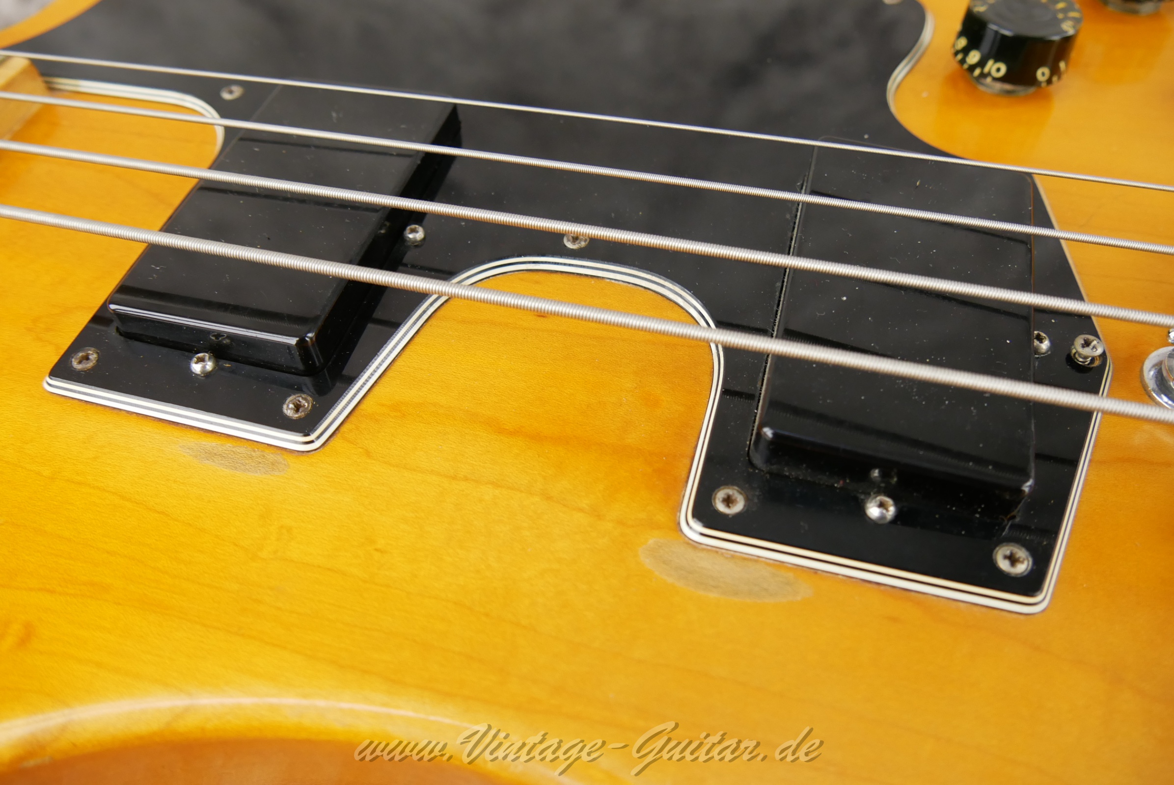 with very worn orig. case [classif. vg ] Modifications: 1 bridge saddle has been replacedAdditional on/off switch installedTwo potknobs are replicasNon orig. strap pinsThe back plate has been cut into 3 partsSome threaded drive-in sleeves were used for the back plate. Comes with orig. but very worn and modified case.
