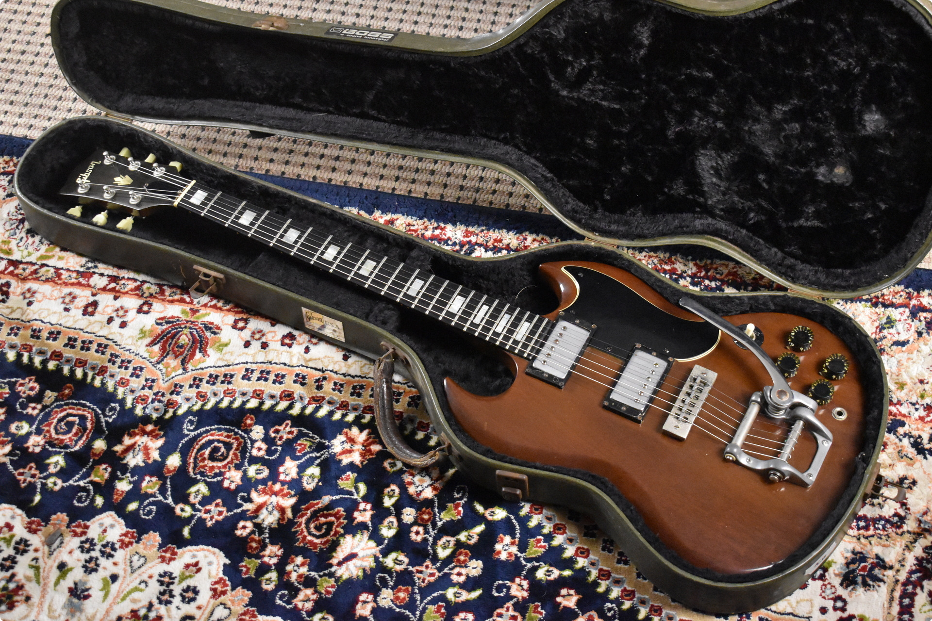 Now available, a 1974 Gibson SG Standard in its original walnut finish with Bigsby.
