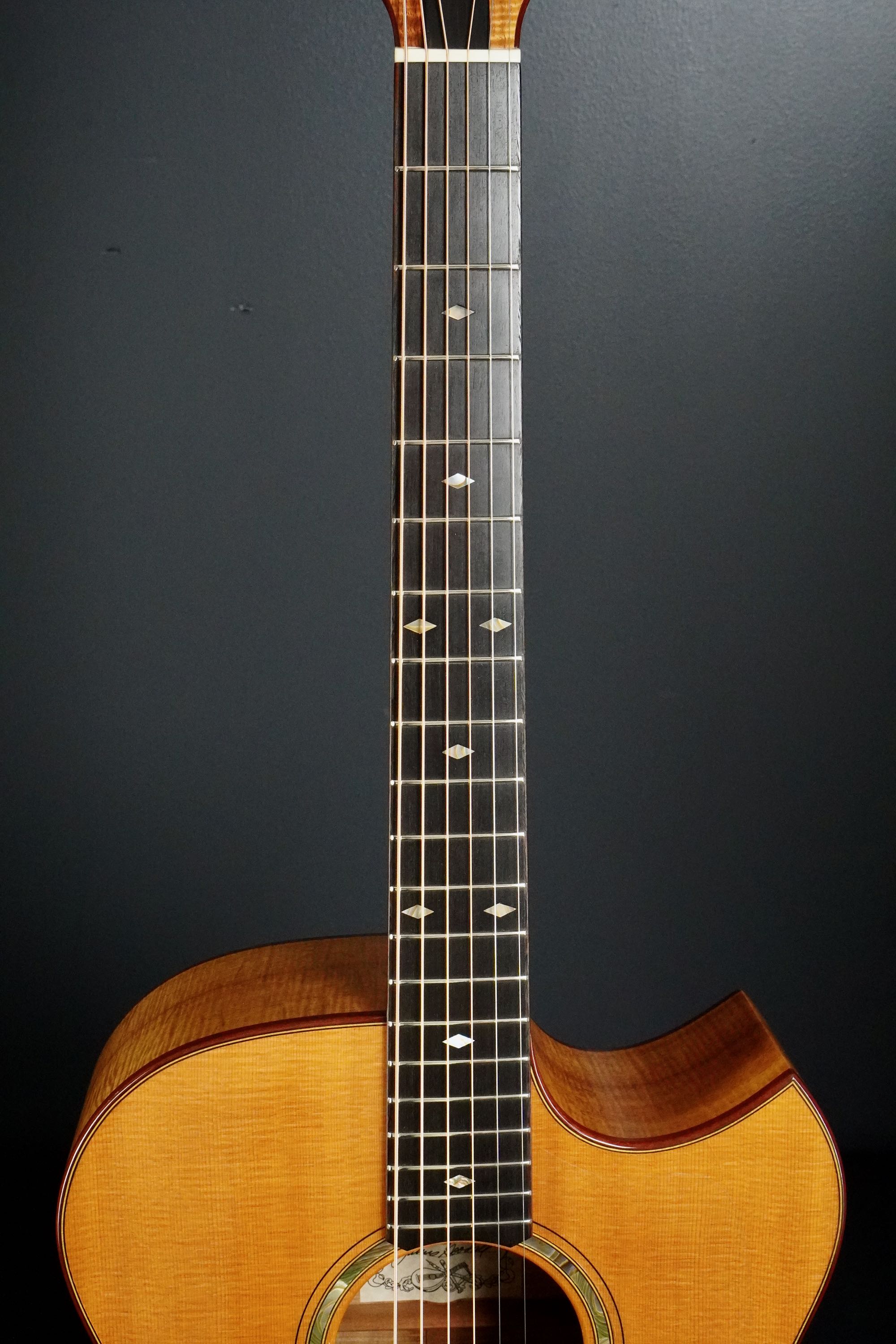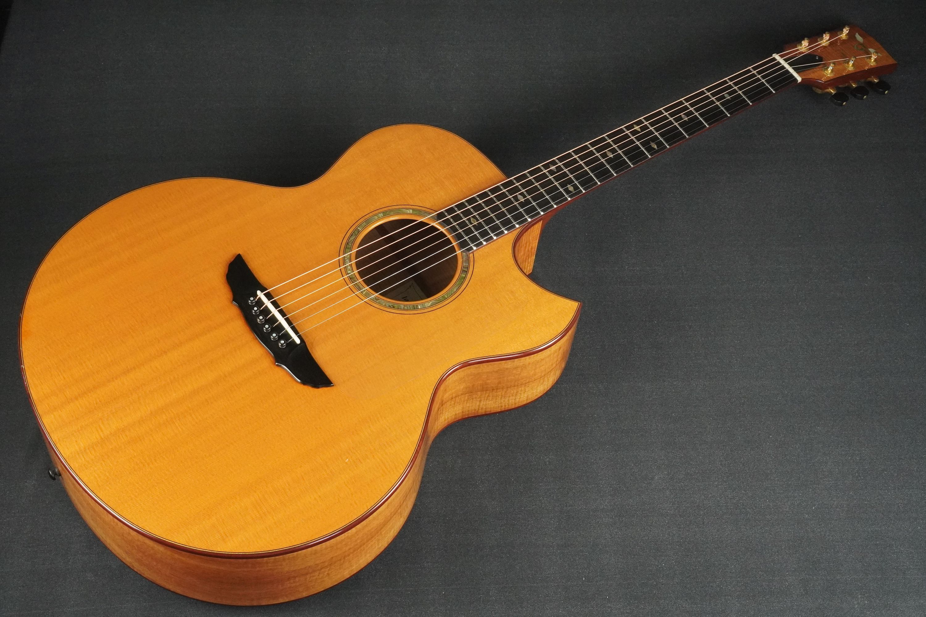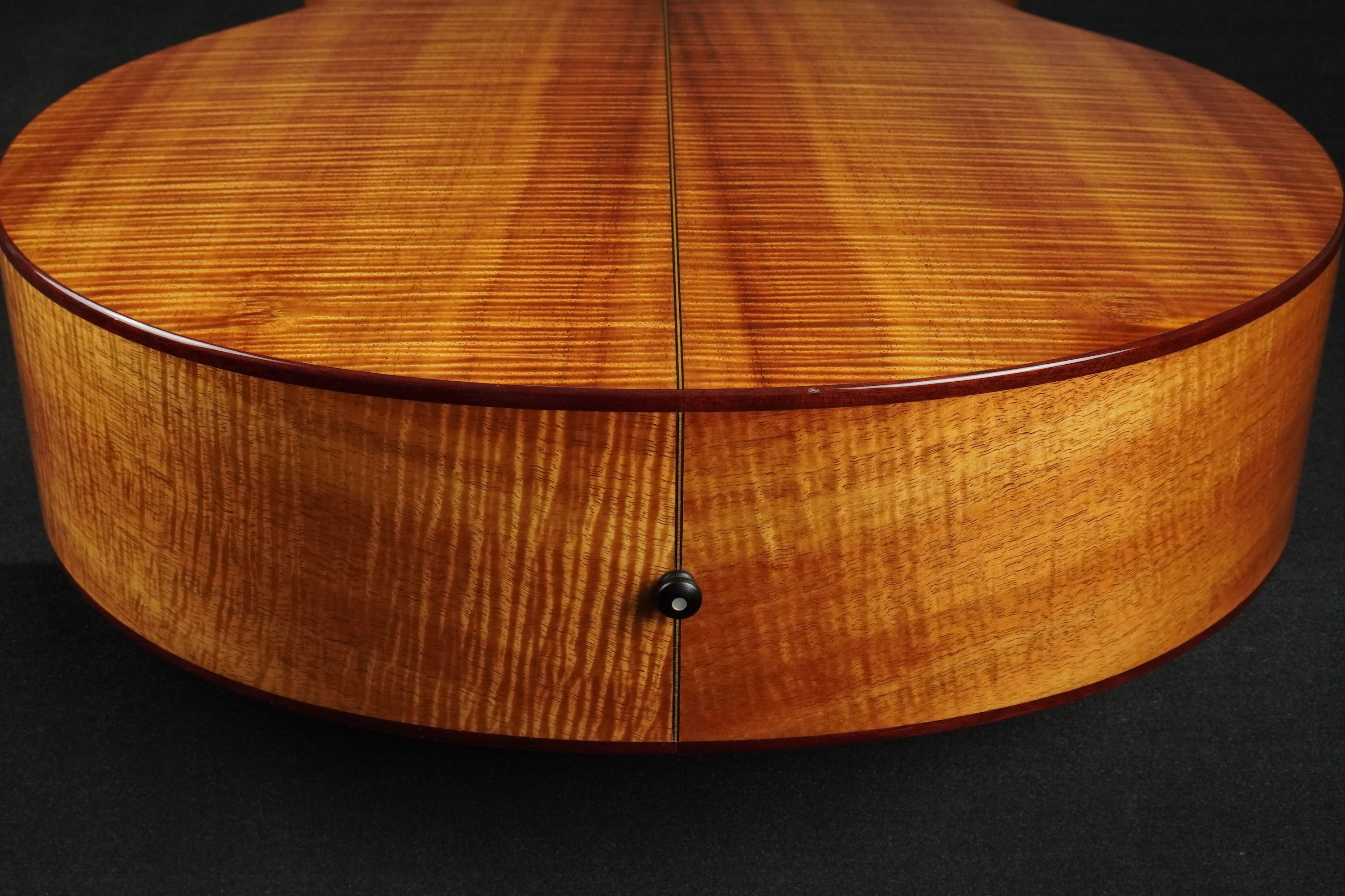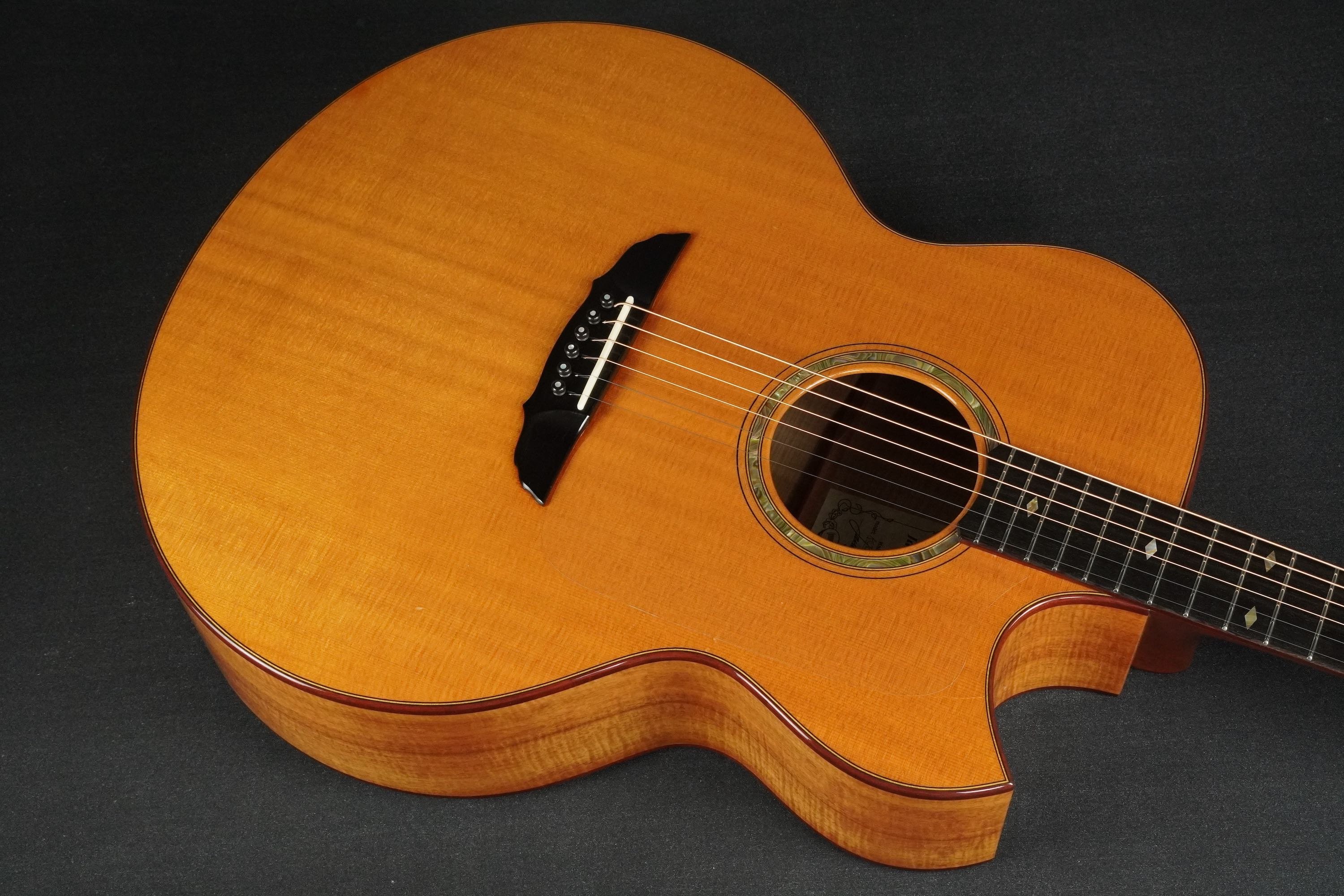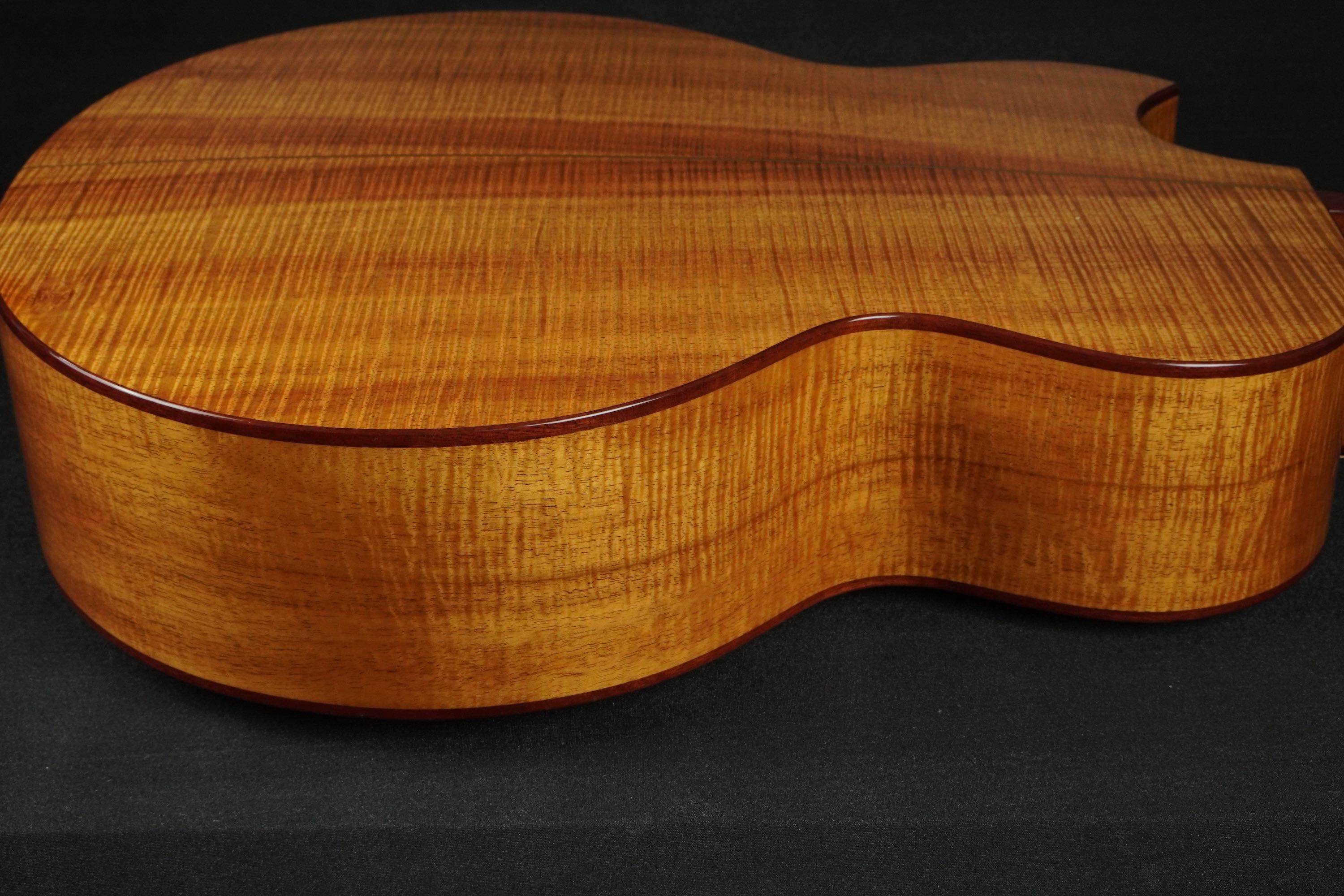 CONDITION : EXF TOP : Spruce SIDE BACK : Curly Hawaiian Koa FINGER BOARD : Ebony BRIDGE : Ebony NUT WIDTH : 44.5 mm BRACING : Original X-Bracing PICKGUARD : Clear SCALE : 648 mm BINDING : Curly Maple TUNER : Schertler Gold tuners with Ebony buttons CASE : Original Hard Case Please contact us if you have any questions. We ship the guitars to most of the countries. Please inquire about the shipping charge. control number : 260304
