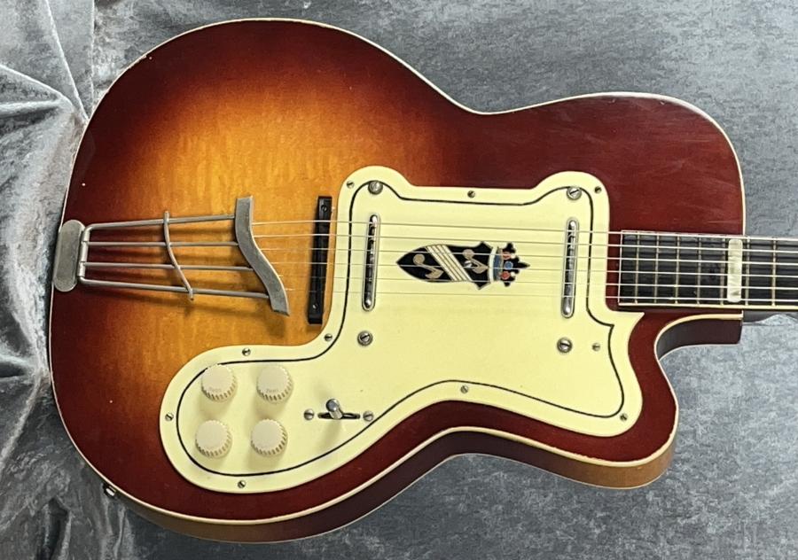 Sunburst, semi-hollow body, electric guitar. Finish is very good and original, laminated maple body, maple neck with rosewood fingerboard. These are fabulous rare guitars and this is in superb condition for its age. The guitar is all original and it plays incredibly with low action all the way up the neck.