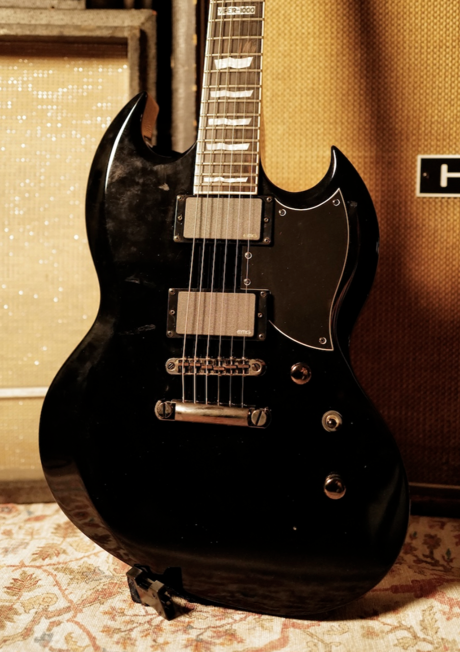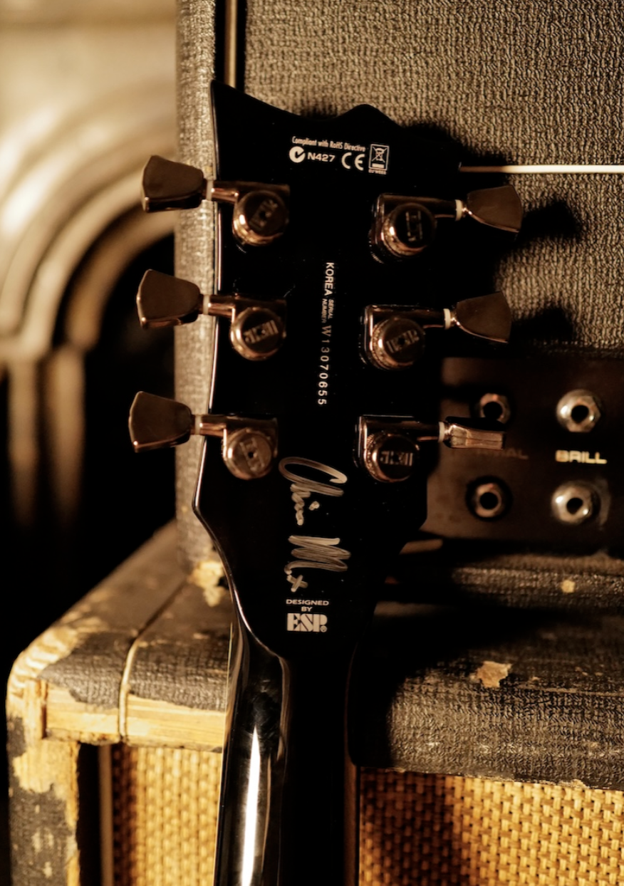 Equipped with active EMG pickups, it delivers a powerful, controlled output suited to high-gain applications, closely associated with the tonal character heard in Deftones’ live performances.
