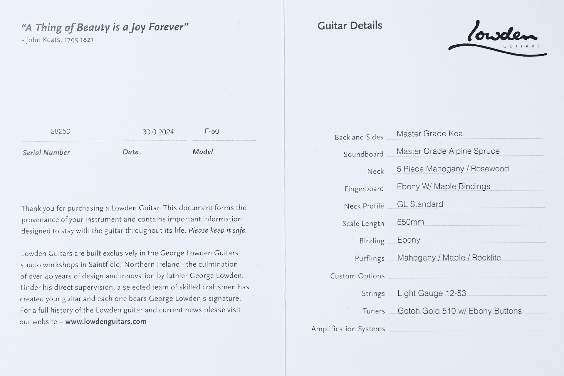 Lowden / F50 Koa Alpine Spruce / Guitar
