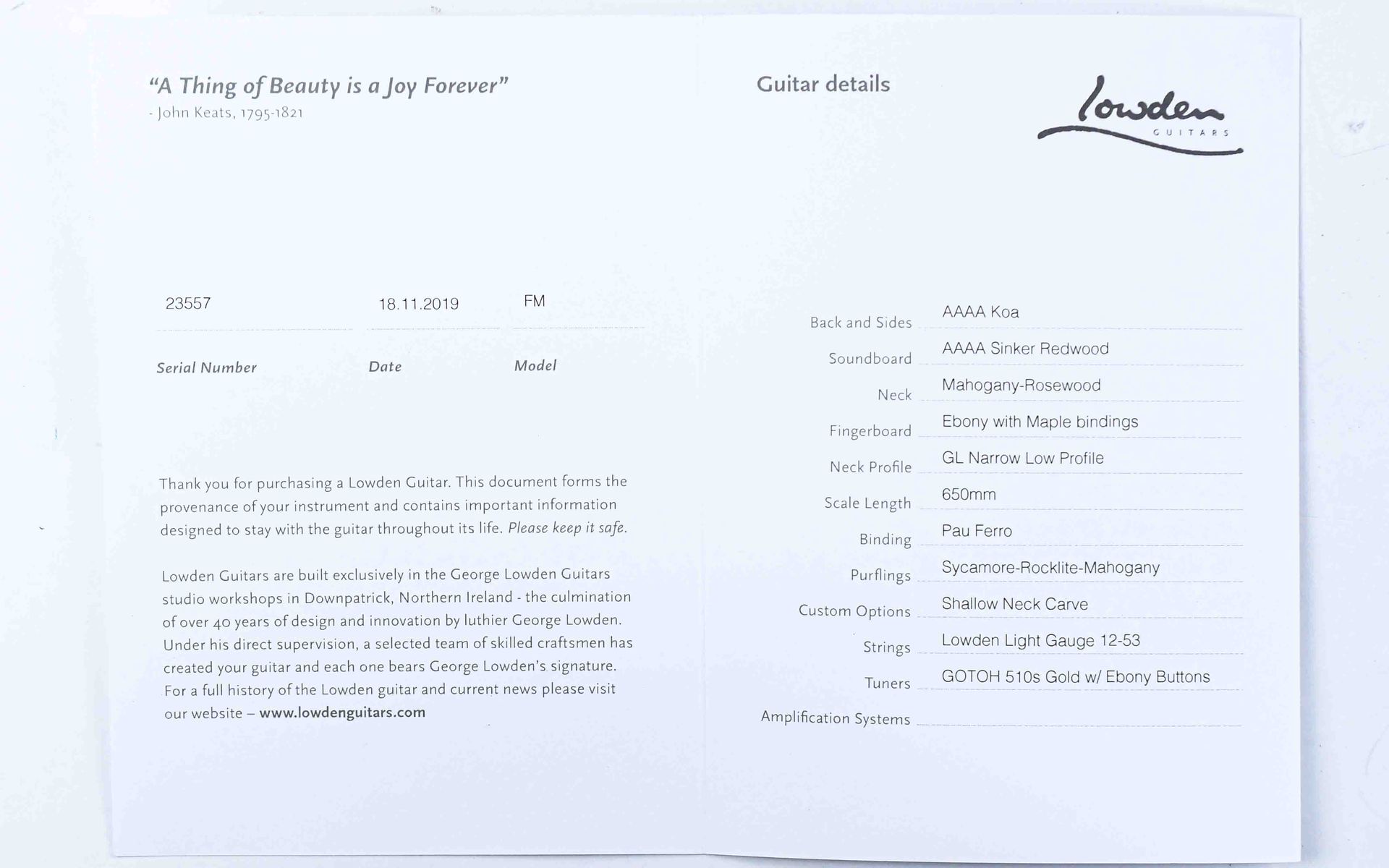 Lowden / FM35 Koa Sinker Redwood / Guitar For Sale