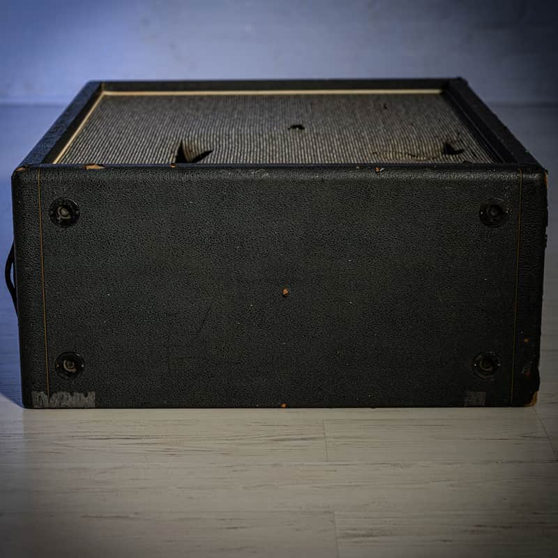 The following is Ronson’s original 1966 Marshall “Tall” Pinstripe Straight Front 4x12 Cabinet that was used for stage and touring purposes, details as follows