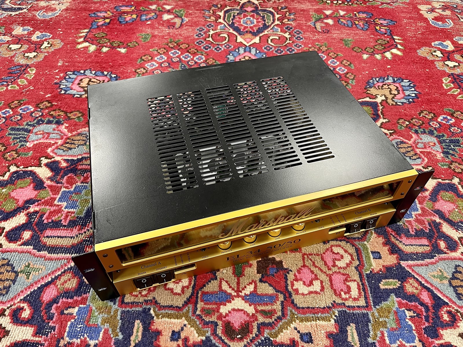 The Marshall EL34 50/50 is a professional-grade, all-valve stereo power amplifier built to deliver the classic Marshall tone with precision, punch, and power. Designed for guitarists running rackmount rigs, this dual monobloc 3U unit produces 50 watts per channel in true stereo, making it the perfect partner for stereo preamps and multi-effects processors.
