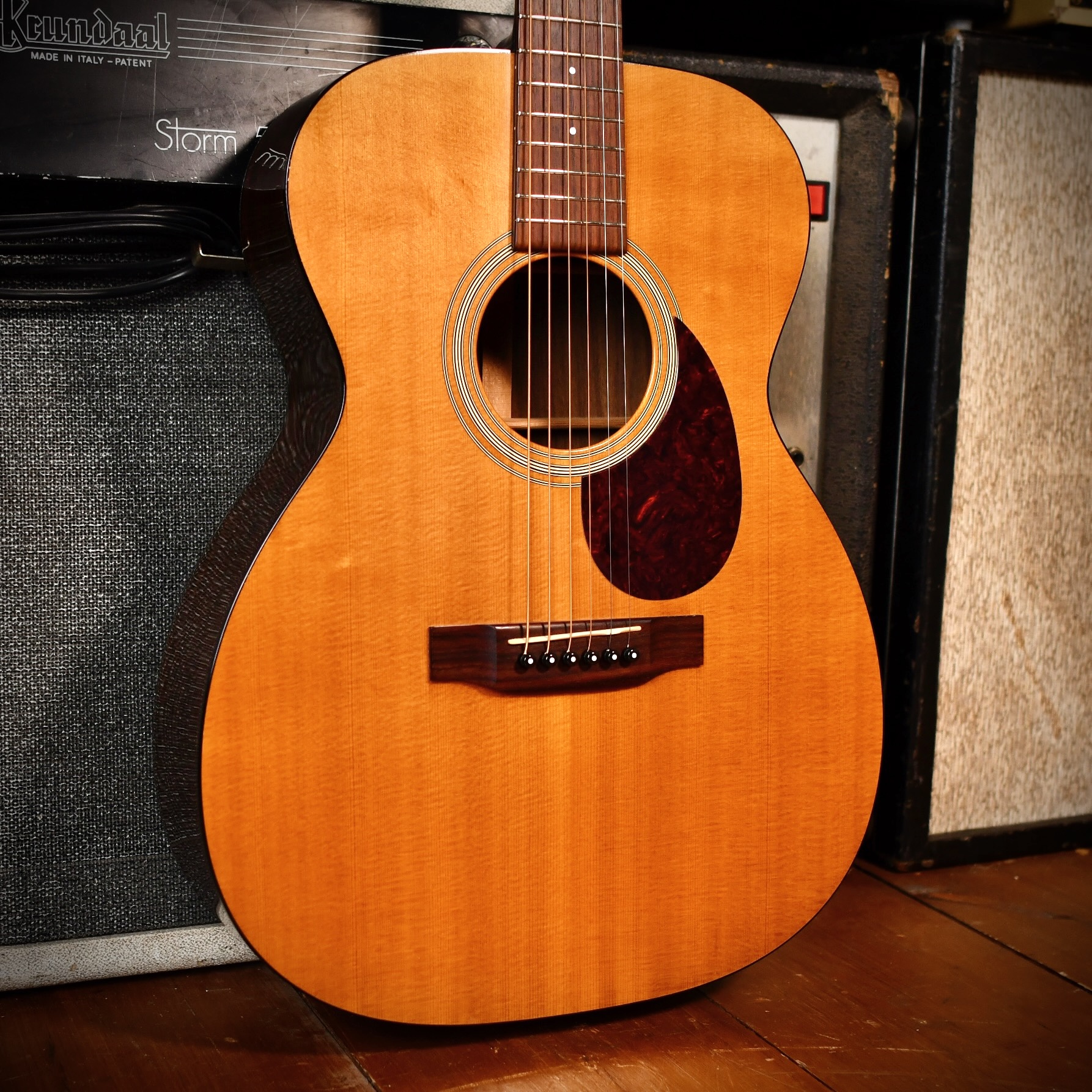The OM-21 was first introduced in 1993, making this 1995 model one of the earliest examples of this now-staple model. The "OM" body shape actually dates back to 1929, but it was discontinued for decades before being revived in the 1980s and 90s. The OM-21 was supposed to be a more affordable, understated alternative to the OM-28, featuring the same high-quality tonewoods (Sitka spruce and Rosewood) but with simpler "Style 21" appointments like tortoise-colored binding instead of herringbone. It is highly regarded for its 25.4" scale length, which provides more string tension and "snap" compared to the shorter-scale 000-28.