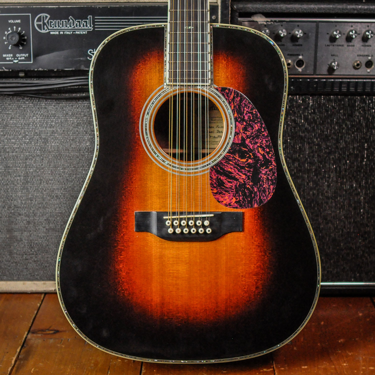 The following is an original Martin Roger McGuinn Signature Model 12-String in Sunburst, hand-crafted in Nazareth, Pennsylvania, USA, in collaboration with the legendary Byrds frontman. Details as follows: