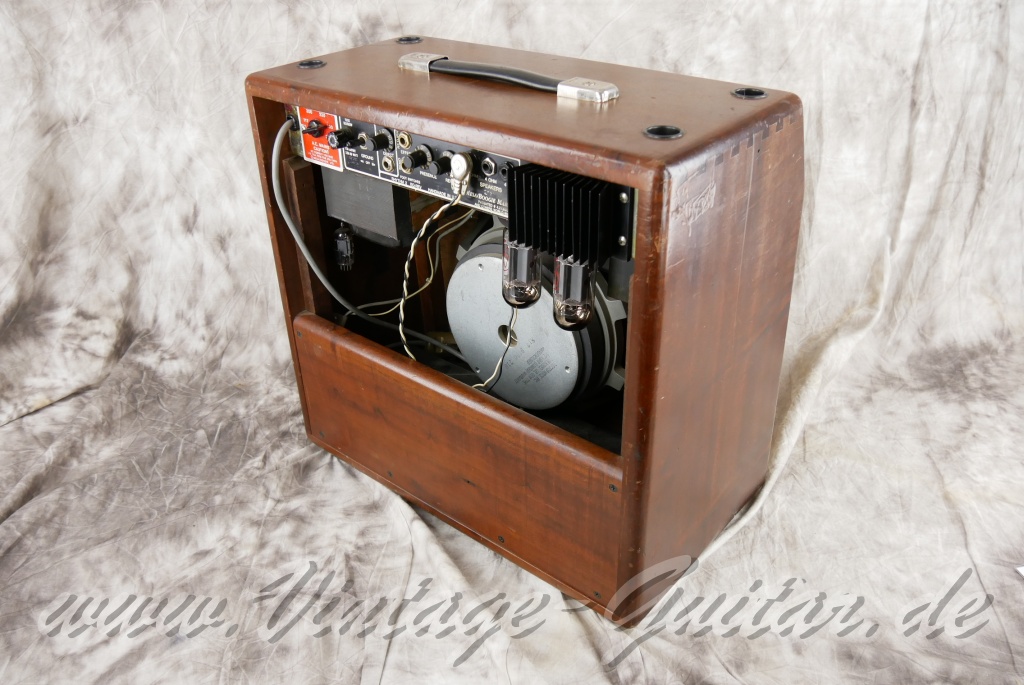 with flightcase [classif. exc ] Amplifier was serviced in January 2024: new pair of power tubes (6L6GC) Except for replaced tubes, the amplifier is in untouched condition. Comes with original footswitch and flight case.