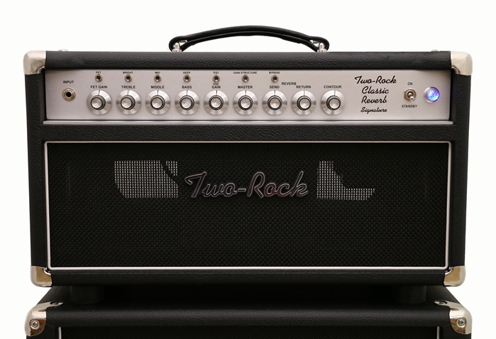 Flaggskeppet från Two-Rock, detta en kanalsmonster, är den ultimata toppen för den som söker efter en grundton som är fet, ren och kraftig, med stora möjligheter att finjustera in det precis så som man vill ha det. The single-channel Classic Reverb Signature is Two-Rock’s ultimate tone shaping machine. Updated in November of 2016 with Bill Krinard’s new design tactics, this amp is available in 50W (2 x 6L6) or 100W (4 x 6L6) head. Built on either a black or silver aluminum chassis, this amp has been updated with a new output transformer on the 100 watt models, as well as an added Gain Structure switch for 3 different voicing settings on the input stage. Extensive tone shaping is offered via Treble, Middle, Bass, Bright, Mid, Deep and EQ controls. A Contour control facilitates switching between single coils and humbuckers while adjusting for room acoustics, without having to change preamp EQ settings. A footswitchable FET preamp stage, eq BYPASS and REVERB DEFEAT are stock features of this versatile amplifier. New Signature Features: Gain Structure: The 3 position gain structure switch changes the sensitivity and overall feel of the preamp. In the down position, the amp feels similar to a vintage blackface, the middle position is much like the Two-Rock Matt Schofield Signature front end with a hotter input stage, and the full up position is our traditional Two-Rock frontend. Power Selector: On 50 Watt Models, the HIGH power mode is fixed-bias and the LOW power is cathode biased. While the Low setting may sound louder, you’ll notice a significant headroom decrease. On 100 watt (4x6L6) models, the HIGH power mode is100 watts, the LOW power mode is 50 watts. With the 100 watt Classic Reverb Signature’s output transformer, when switching from 100 to 50 watts, the transformer will compensate for impedance differences so you will not have to change impedances. 100 Watt Head with half power scaling option 4 x 6L6 FET, EQ BYPASS, and REVERB DEFEAT Foot Switch 20-5/8″ wide x 12″ tall x 10-5/8″ deep 43 LBS 4 ohm; 8 ohm, 16 ohm Speaker Outputs Silver Anodize with Silver Skirt Knobs