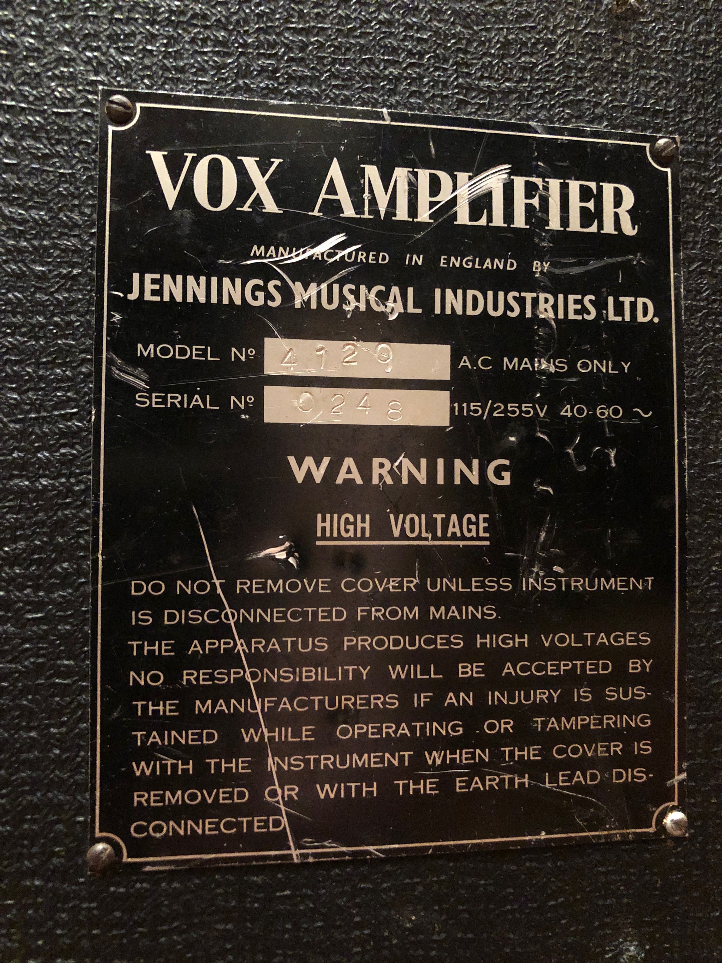The Music Locker prides itself on offering vintage and collectable pre-owned instruments and equipment (the Products). We take all reasonable steps to ensure the equipment has been inspected by a competent person in the UK to ensure it complies with UK safety standards. This may mean it does not comply with the current standards in the country in which it will be subsequently used. It is the purchasers’ responsibility to ensure it is inspected by a competent person knowledgeable with the relevant electrical safety standards within that country, prior to connecting to any live electrical circuit. It is the philosophy of The Music Locker to keep all items as original as possible, only changing original components when absolutely necessary. This includes valves, capacitors, transformers, potentiometers, frets, etc. This gives the buyer the option of tailoring to their exact needs, and may mean that the item is not operating at optimum performance levels. Therefore, your personal preference may differ, depending on your circumstances (i.e. collector or musician), and you may decide to service the item in more depth upon receiving. The Music Locker cannot accept responsibility for any costs of refurbishment to a standard different to the one advertised.