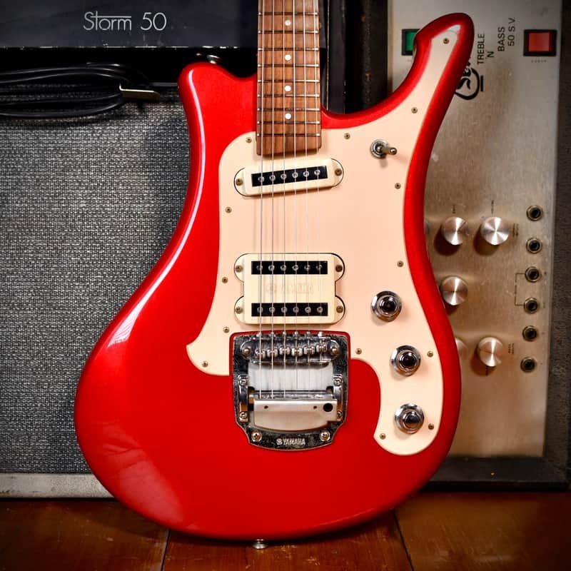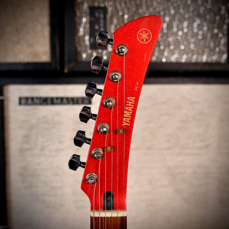 The SGV-300 is a modern reissue of the legendary 1966 Yamaha SG-5A, often referred to as the "Flying Samurai" due to its distinctive, sword-like asymmetrical body and "hockey stick" headstock. The SGV series was officially launched at the 2000 NAMM Show and remained in production until roughly 2007. The “Samurai" headstock design was one of Yamaha's earliest major innovations, featuring a sharp, 12-degree angled look that became an icon of 1960s Japanese "Eleki" surf rock. The bridge pickup is actually two single-coils placed close together: using the blender knob, you can transition from a bright single-coil "quack" to a full humbucking sound.